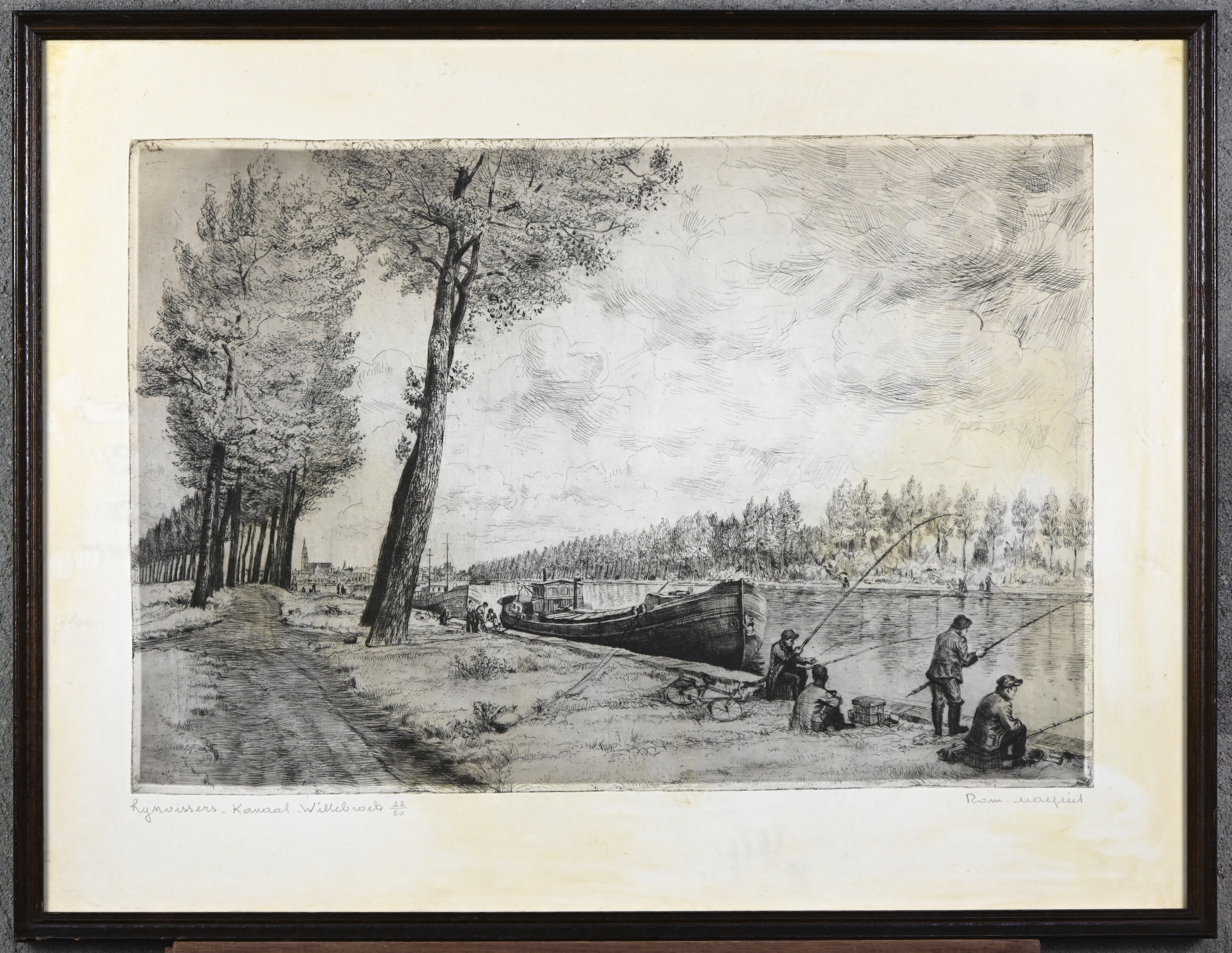 'Character Faces', a monochrome etching. Signed; E. Van Dooren. -