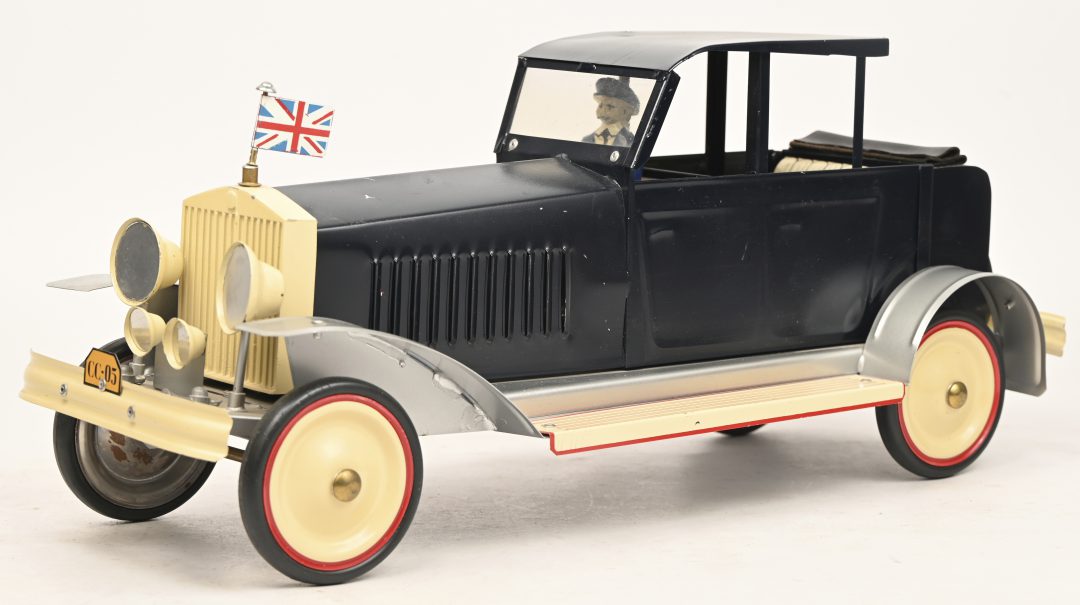 A tin paddle steamer with a working steam engine. Model T-263, number 1 out of an edition of 60 copies. -