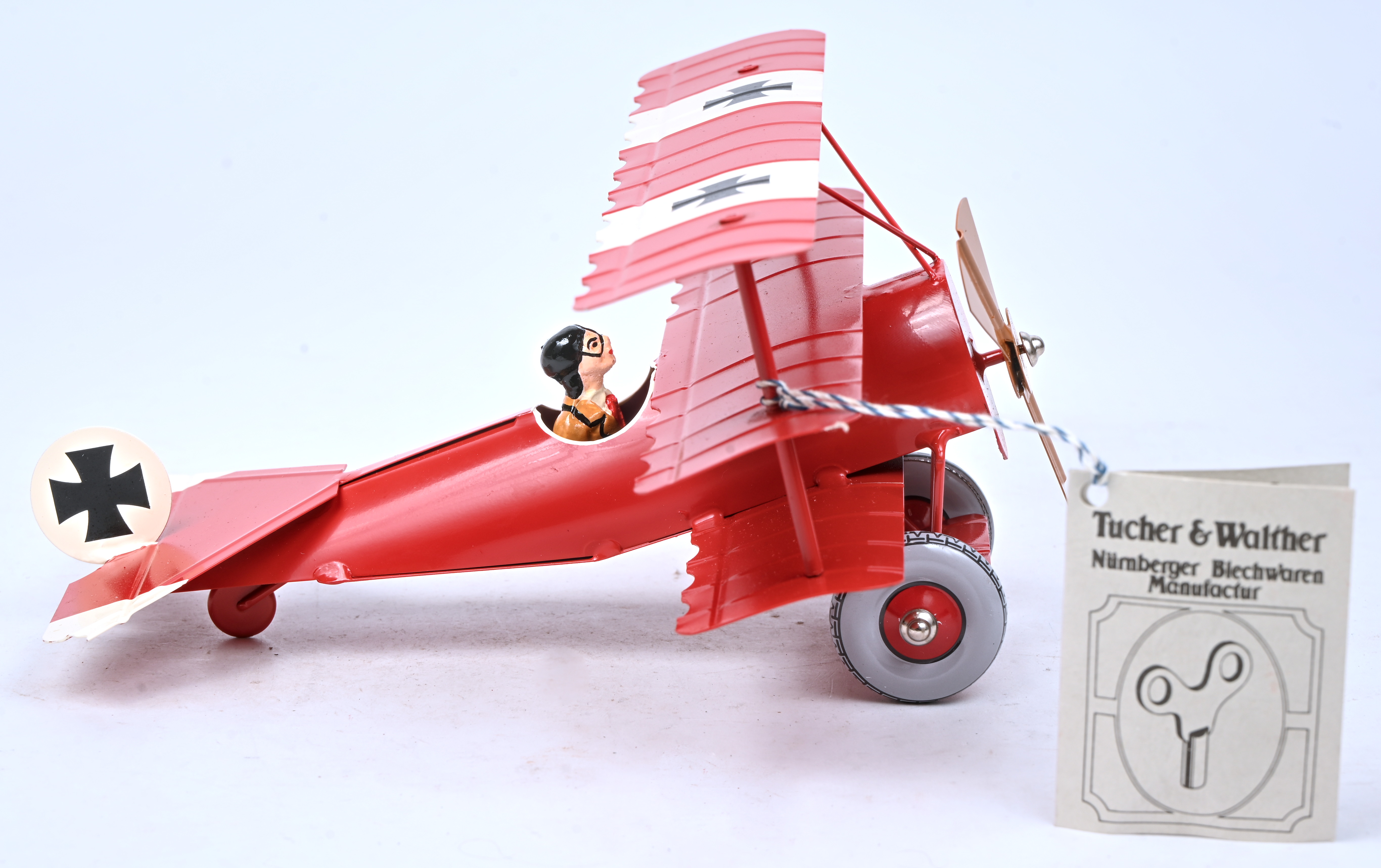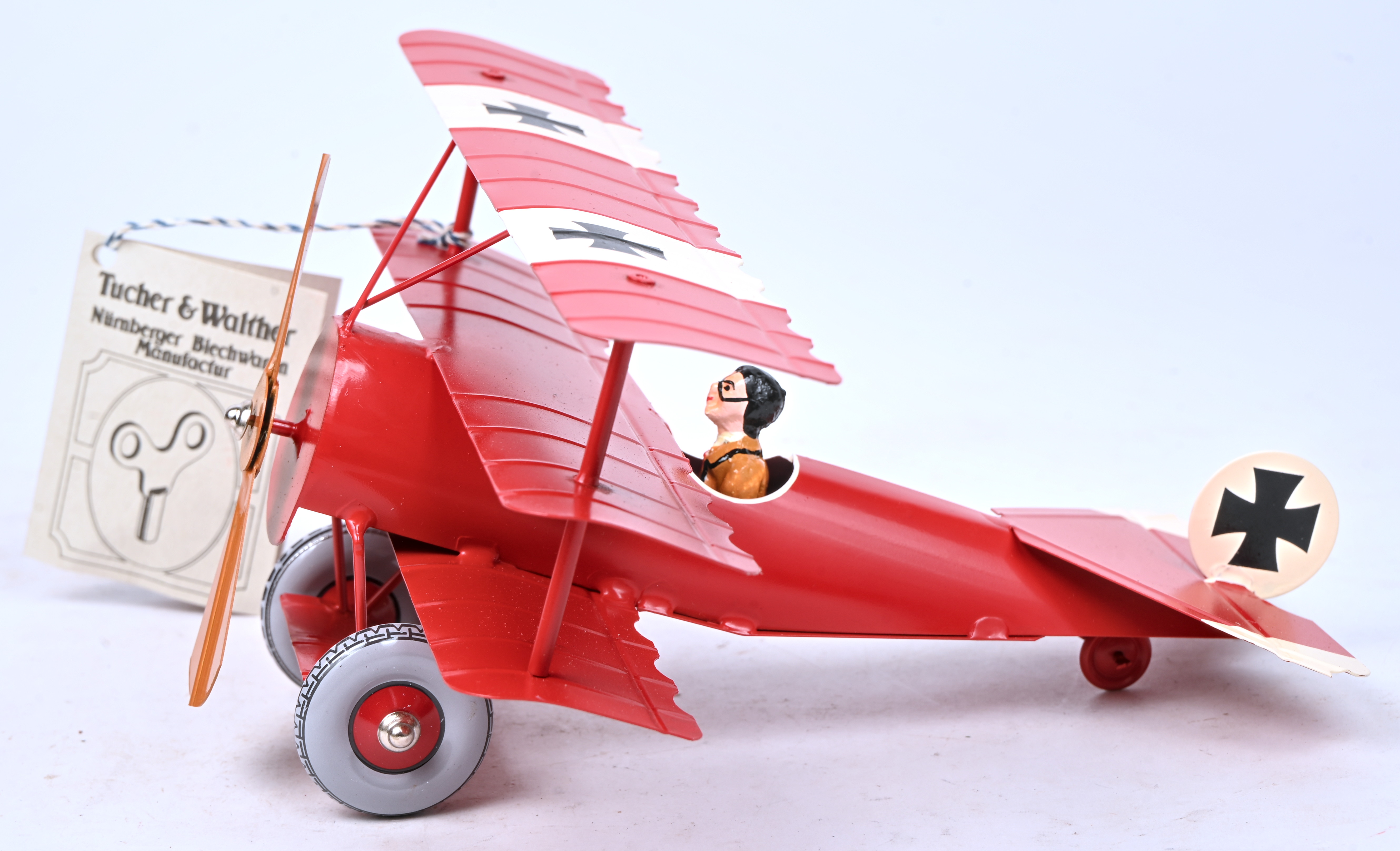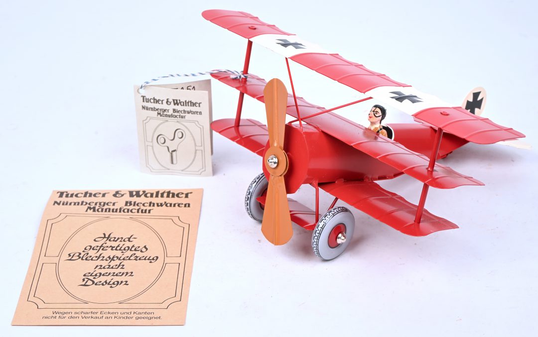 #9Nürnberger Bleichwaren Tucher & WalterEen blikken tweedekker vliegtuig met een werkende stoommotor model T-234. Nr. 7 uit een oplage van 100 exemplaren.