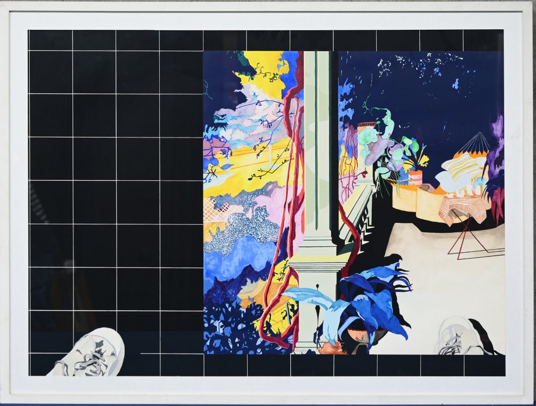 #17Een vintage wandlamp van plexiglas, in twee kleuren.