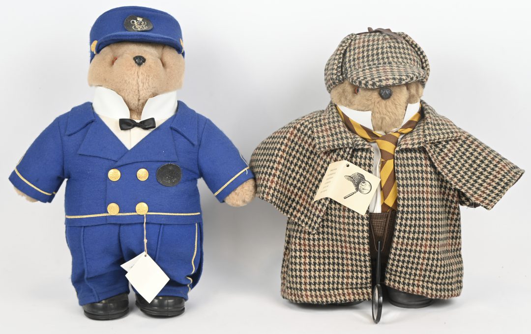 ‘Scherlock Holmes’ & ‘Chief Steward on the Venice-Simplon Orient Express’. Twee verzamelberen geproduceerd door Gabrielle Designs, Doncaster, Yorkshire, England.
