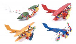 #10Vier blikken vliegtuigjes, replica naar oud model. Twee mono en twee dubbeldekkers.