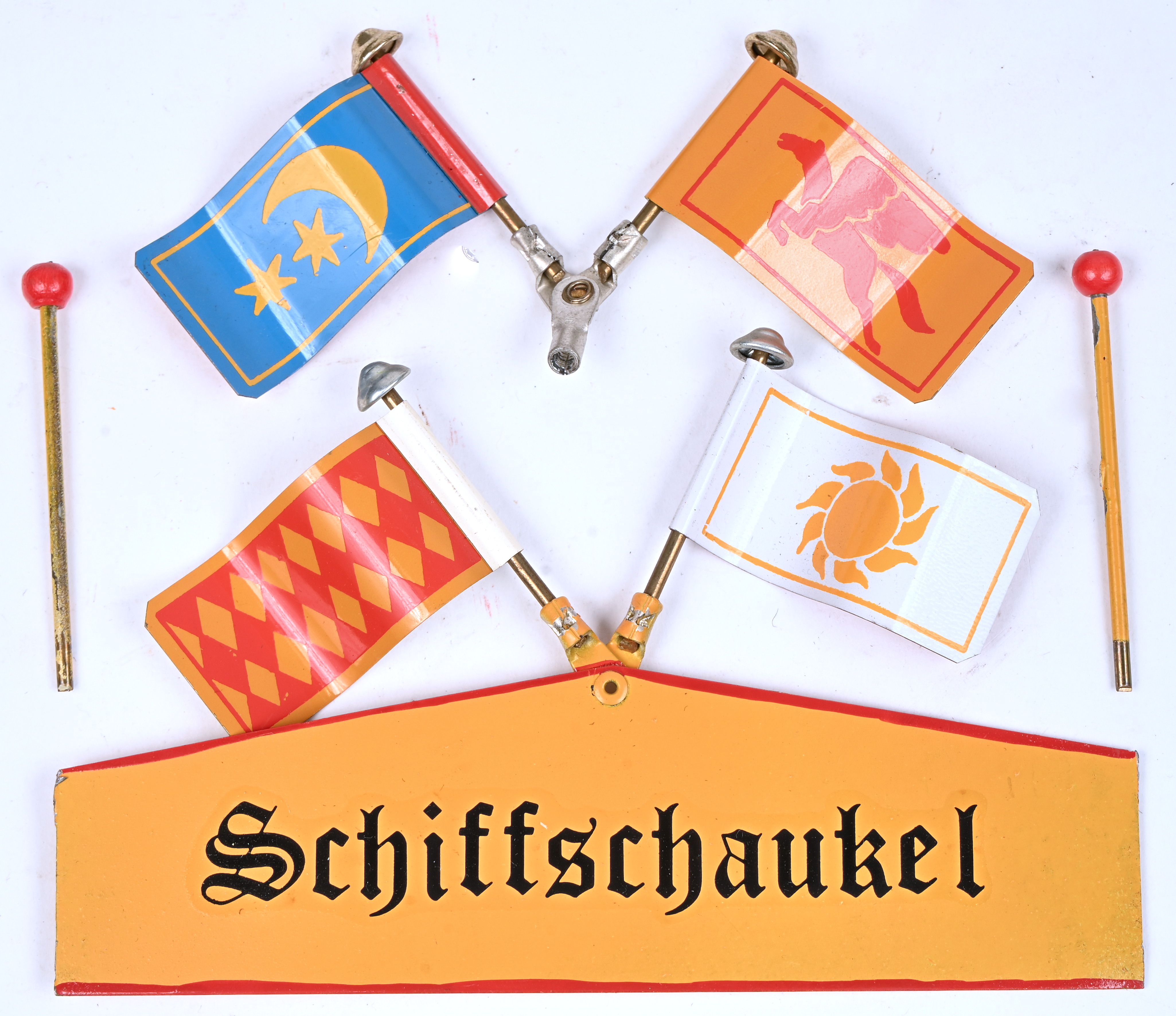 #18Nürnberger Bleichwaren Tucher & WalterPeriod: 1987‘Musikkarussell hellblau mit 2 Gondeln’, een blikken carousel. De vlaggen zijn manco. Model T-156, uitgegeven in een beperkte oplage van 500 exemplaren. Met OVP.