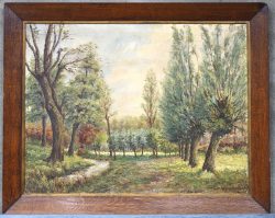 #244Henri Waumans‘Boszicht’. Olieverf op doek, getekend.