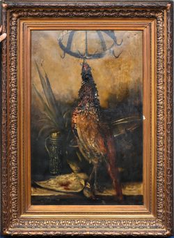 #134Léon GoupilPeriod: 1834-1890“Jachtstilleven met fazant”. Olieverf op doek. Gesigneerd linksonder. Kleine letsels.
