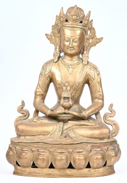 A bronze Tibetan statue of Aparmita, Buddha of Infinite Life.