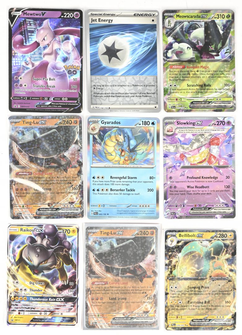 Slowking ex [Double Rare; Holofoil] — Paldea Evolved — €0.64Meowscarada ex [Double Rare; Holofoil] — Paldea Evolved — €0.60Bellibolt ex [Double Rare; Holofoil] — Paldea Evolved — €0.55Jet Energy [Rare; Reverse Holofoil] — Paldea Evolved — €0.46Ting-Lu ex [Double Rare; Holofoil] x2 — Paldea Evolved — €0.45/st (totaal €0.90Gyarados [Rare; Holofoil] — Paldea Evolved — €0.19Raikou GX [Promo; Holofoil] — Sun & Moon Promo — €5.35Mewtwo V [Promo; Holofoil] — Sword & Shield Promo — €5.12