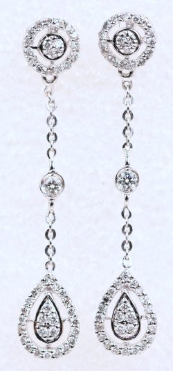 A pair of white gold earrings set with diamonds weighing approximately 0.60 ct total.