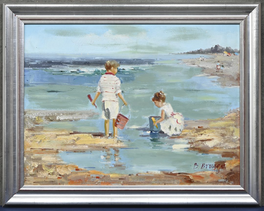 “Playing Children on the Beach,” an oil painting on canvas. Signed B. Brugge.