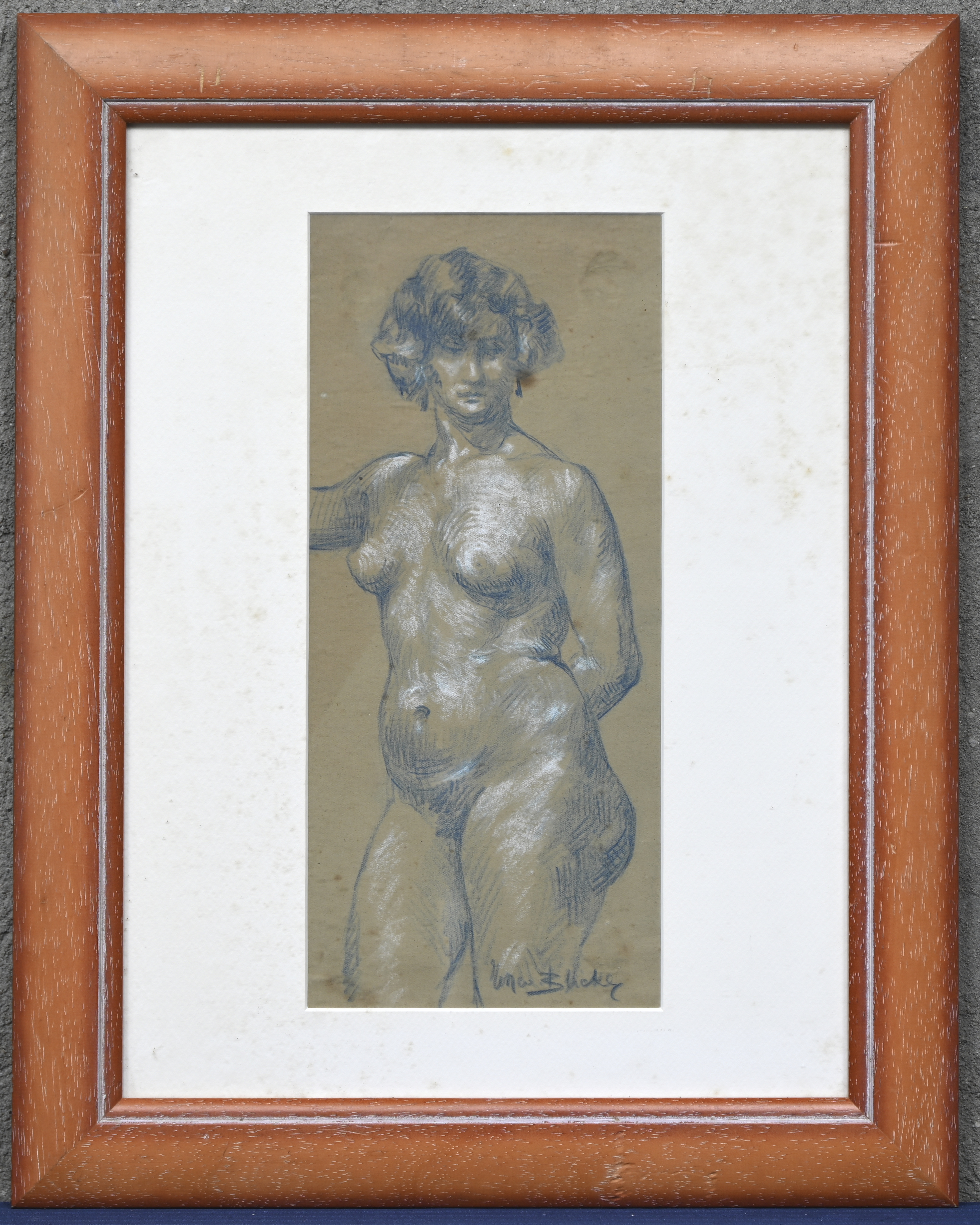 “Standing Nude,” heightened chalk drawing. Signed Theo Blickx.
