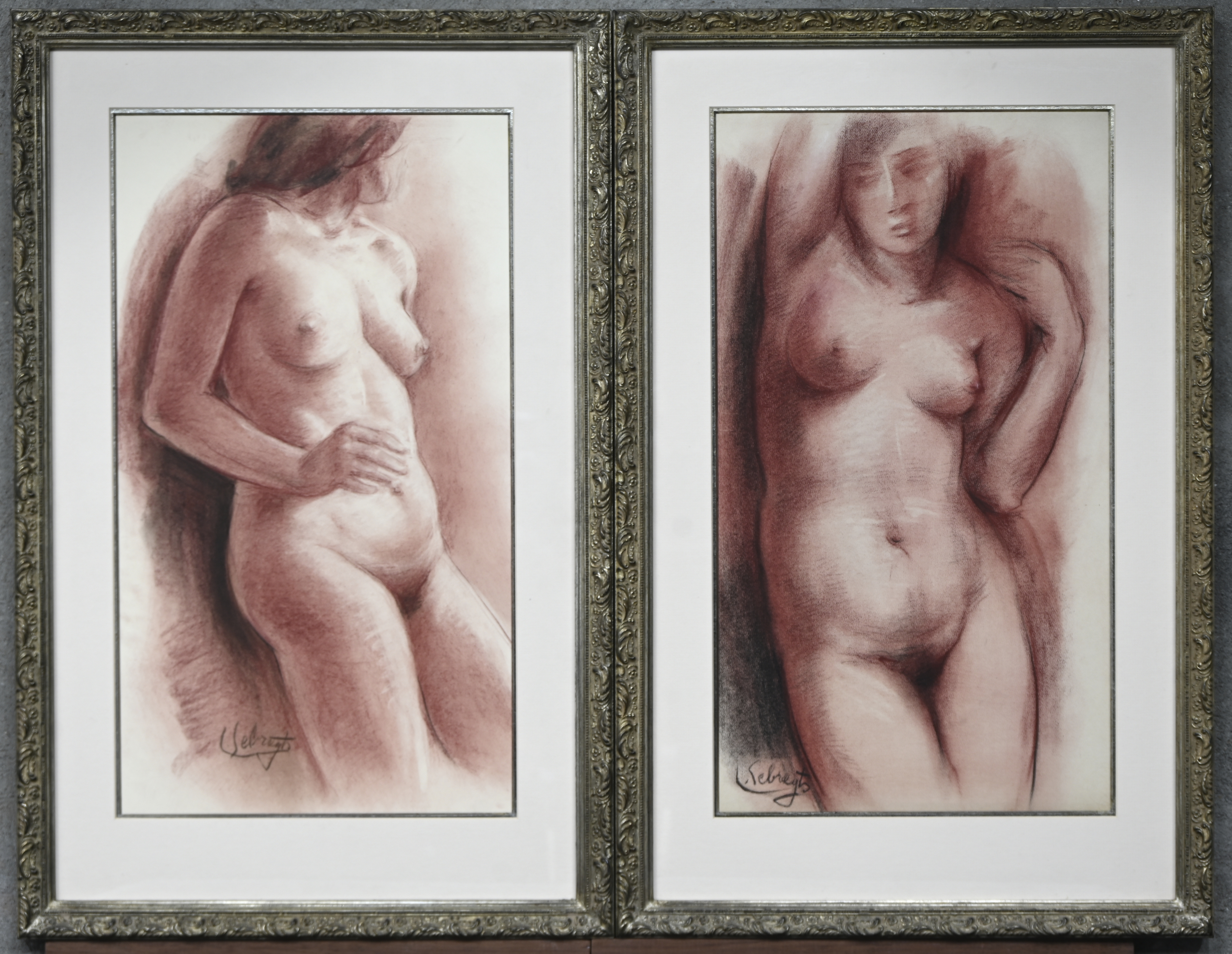 ‘Seated nude’, model study in pencil on paper. Signed L. Sebregts. Sebregts received his education at the Academy of Antwerp and the NHISKA, studying under Isidoor Opsomer and Albert Saverys. -