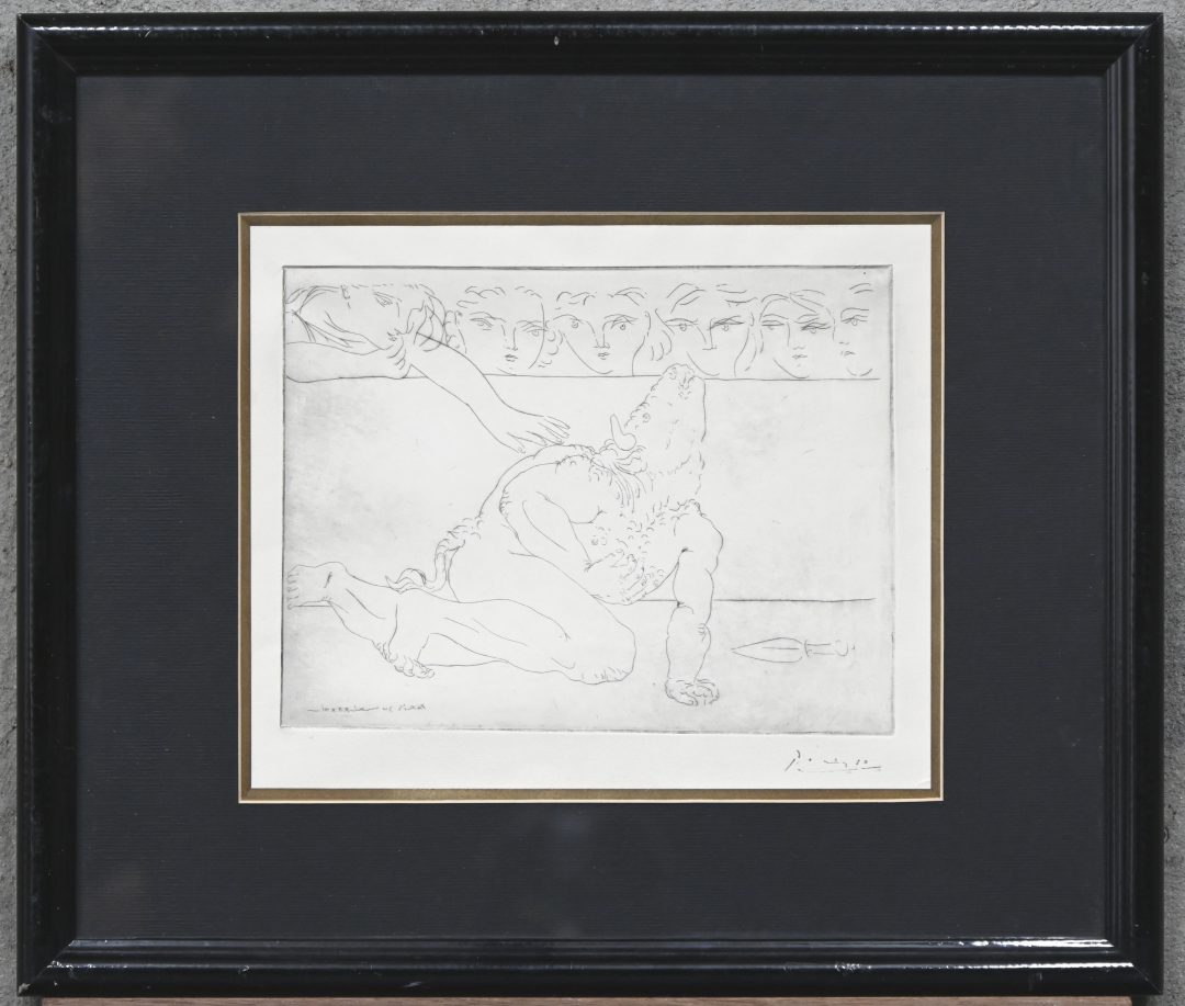 #4Maurice LangaskensPeriod: 1884 - 1965‘Een dichter met visioenen’, een monochrome ets met droogstempel van M. Langaskens. Niet ingekaderd.