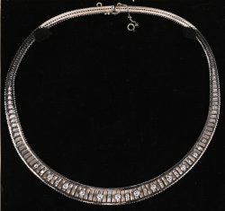 #400Een 18 kt witgouden halssnoer bezet met 10 briljanten met een gezamenlijk gewicht van +- 0,99 ct. H SI2 en 13 diamanten 8 kant met een gezamenlijk gewicht van +- 0,39 ct. H SI 2.