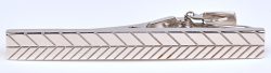 A silver tie clip with a herringbone pattern. Marked. -