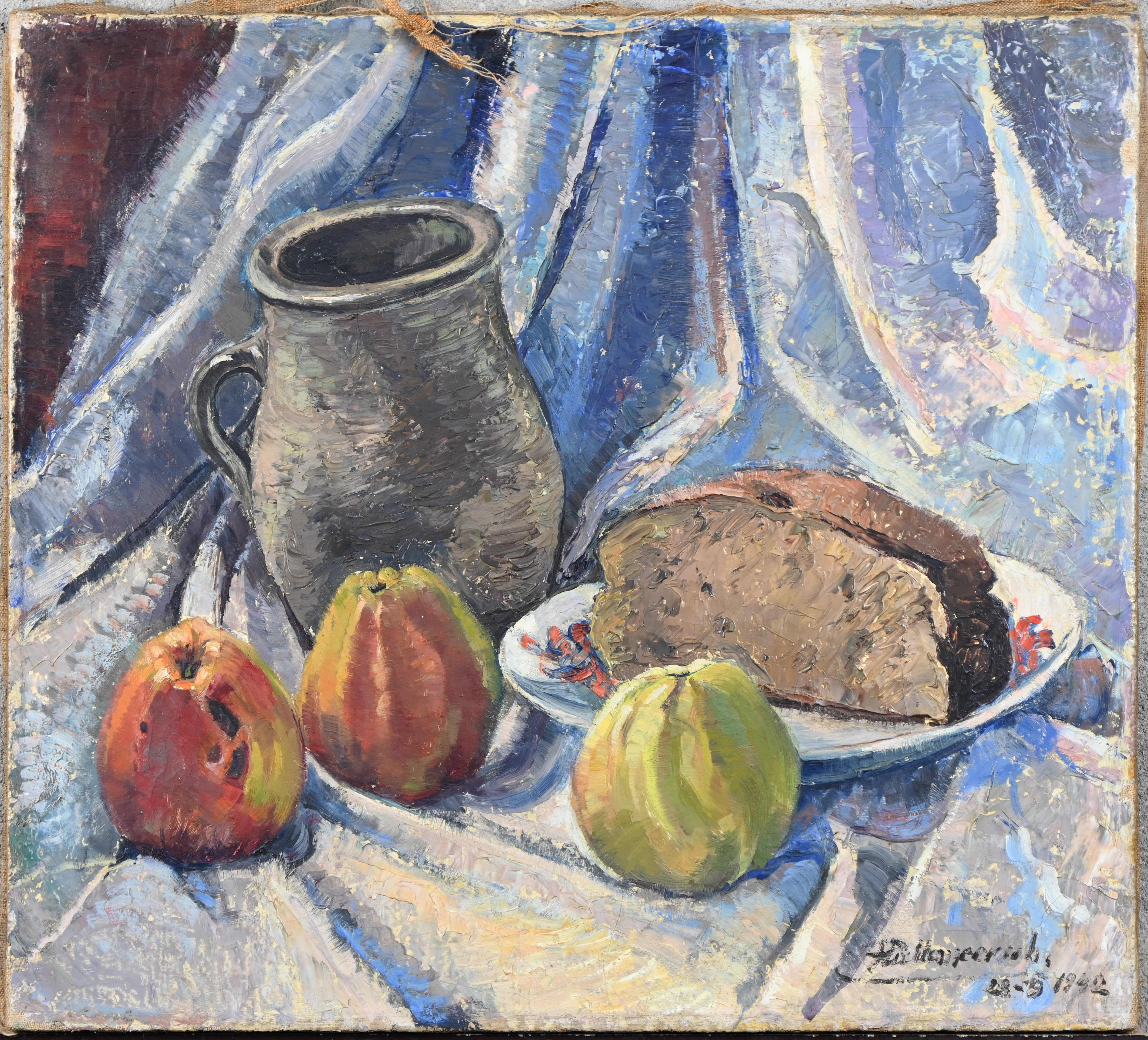 "Howevue", a painting, oil on canvas without frame, signed F. Eyskens and dated 1940.No longer availableDim. 90 x 100 cmEstimate: € 120 / 180 -