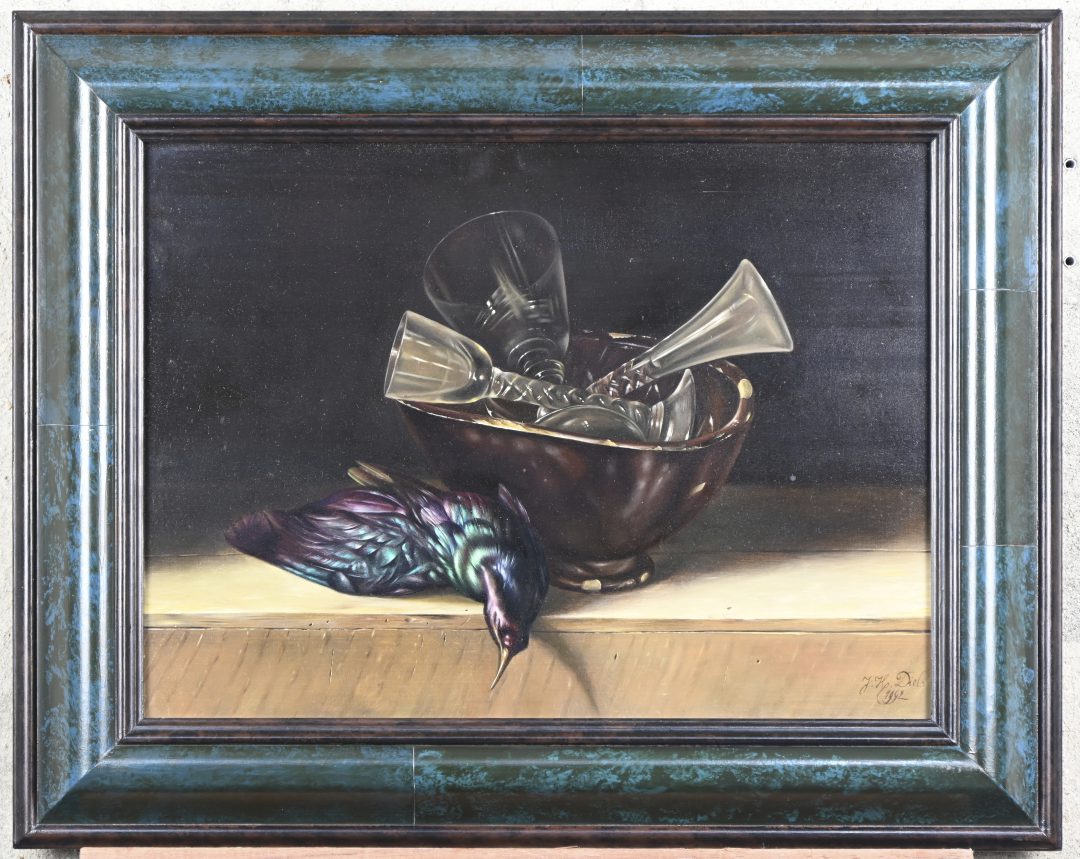#134Léon GoupilPeriod: 1834-1890“Jachtstilleven met fazant”. Olieverf op doek. Gesigneerd linksonder. Kleine letsels.