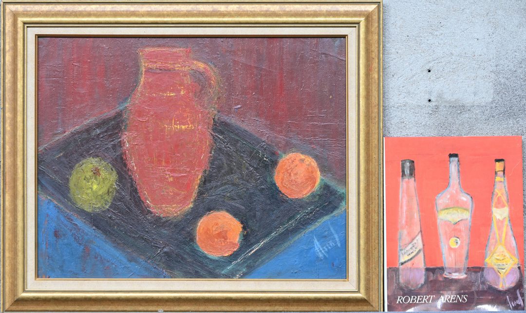 "Still life with copper pan", a painting, oil on canvas, signed and dated (on the back) 1962. -