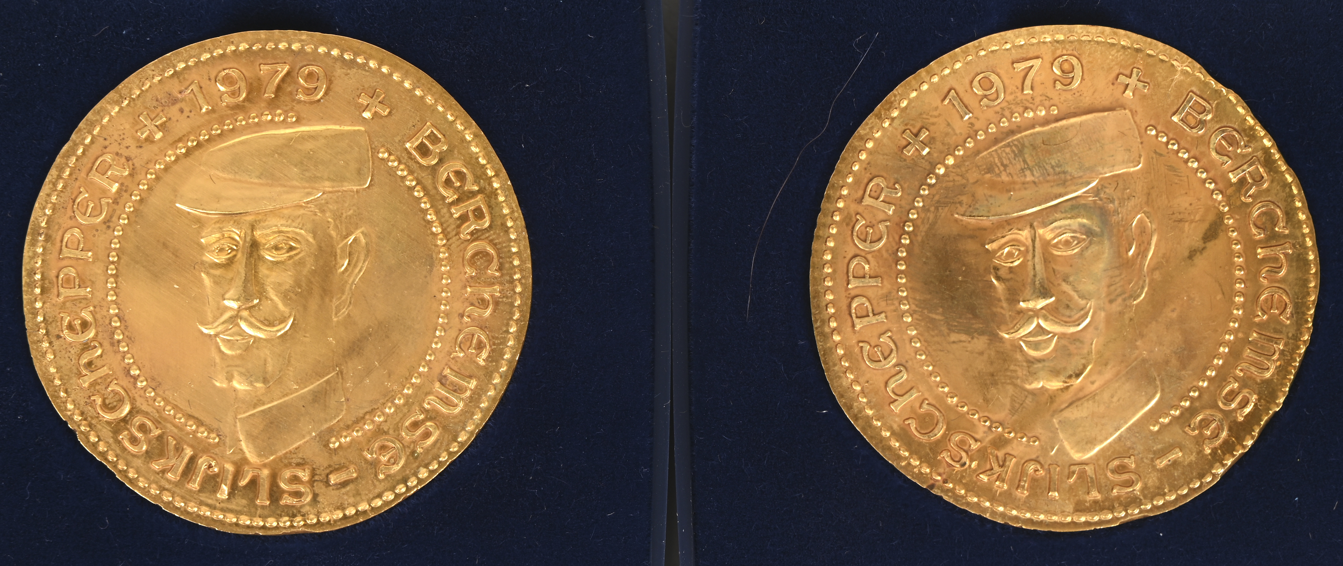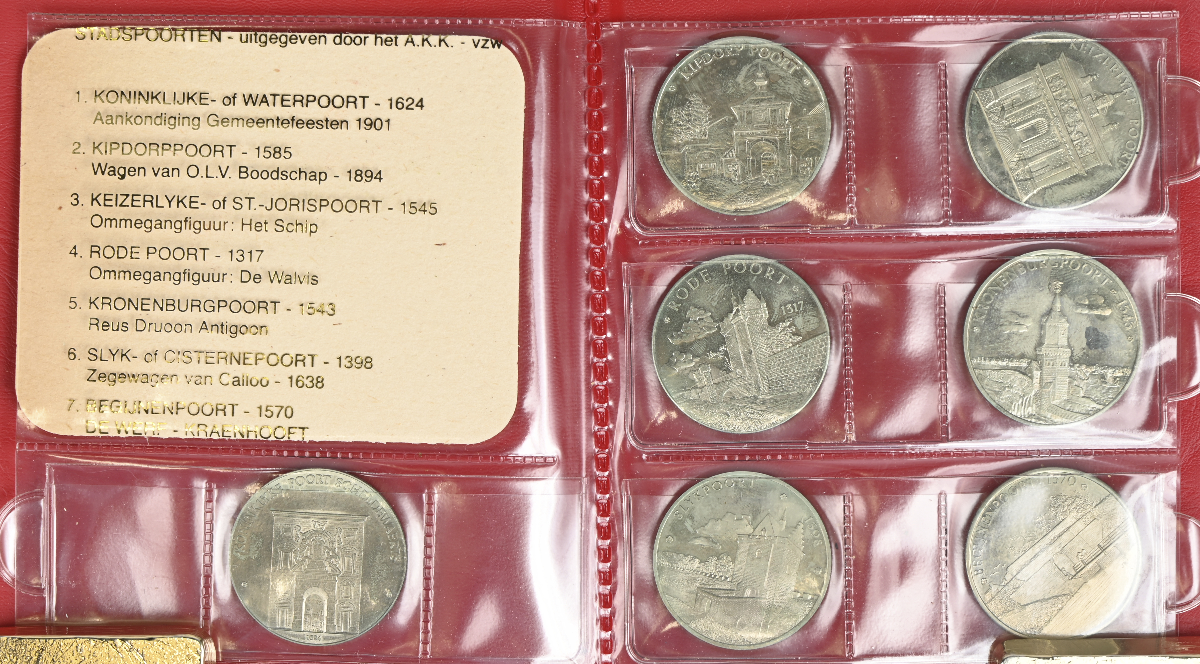 - “Procession of processions 1982”. Two sets of six medals each in brass-nickel and copper-nickel, accompanied by a commemorative beer card from Stella Artois. - “Berchem Mud Scooper 1979”. Five gilt bronze medals in individual cases. Inscription “Agrarium Gigantium Berchemiense”. Comemmorating the inauguration of the giant Tuur De Slijkschepper.
