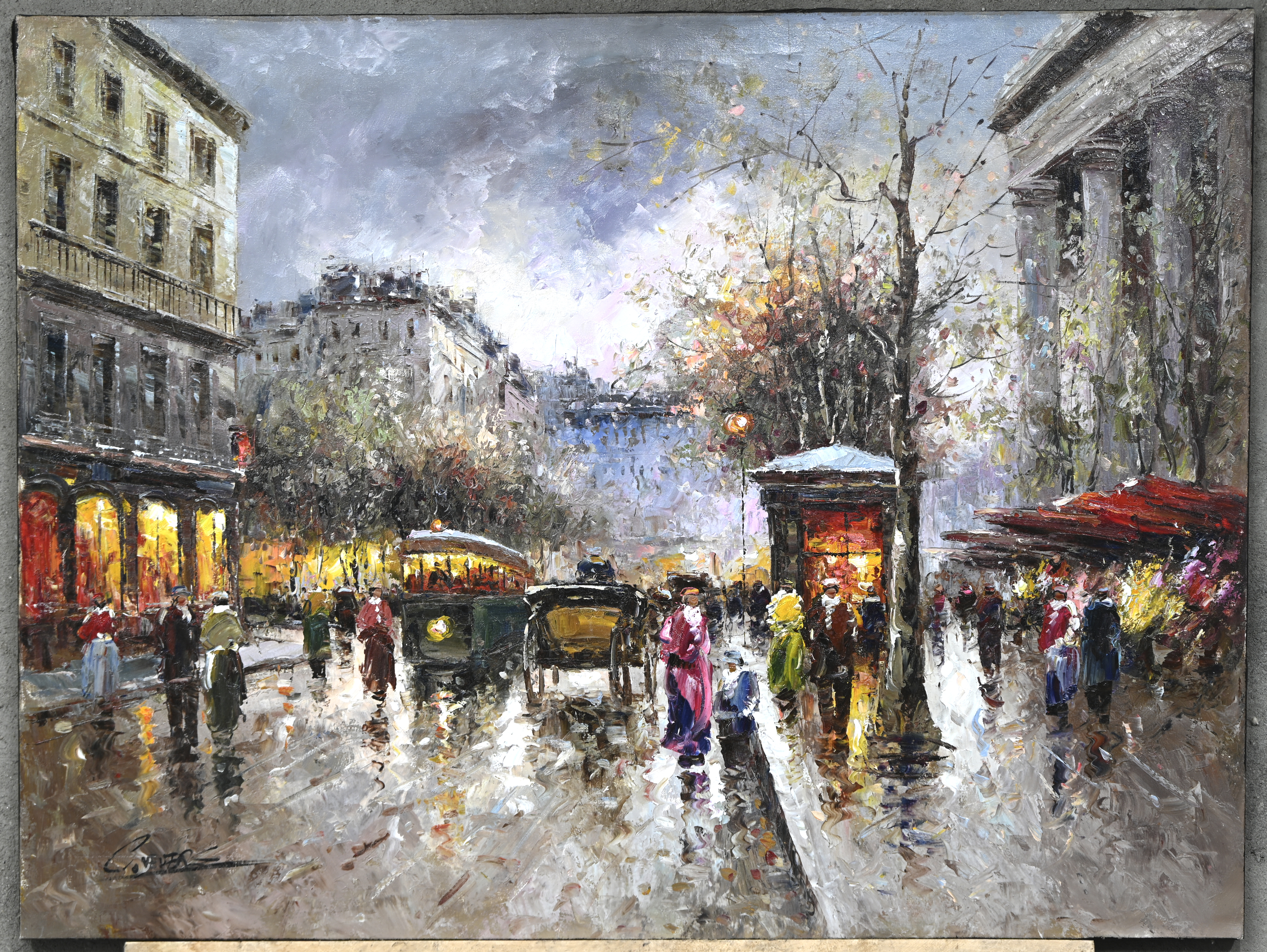 “Street Scene in Paris,” oil on canvas. Signed C. Vevers.