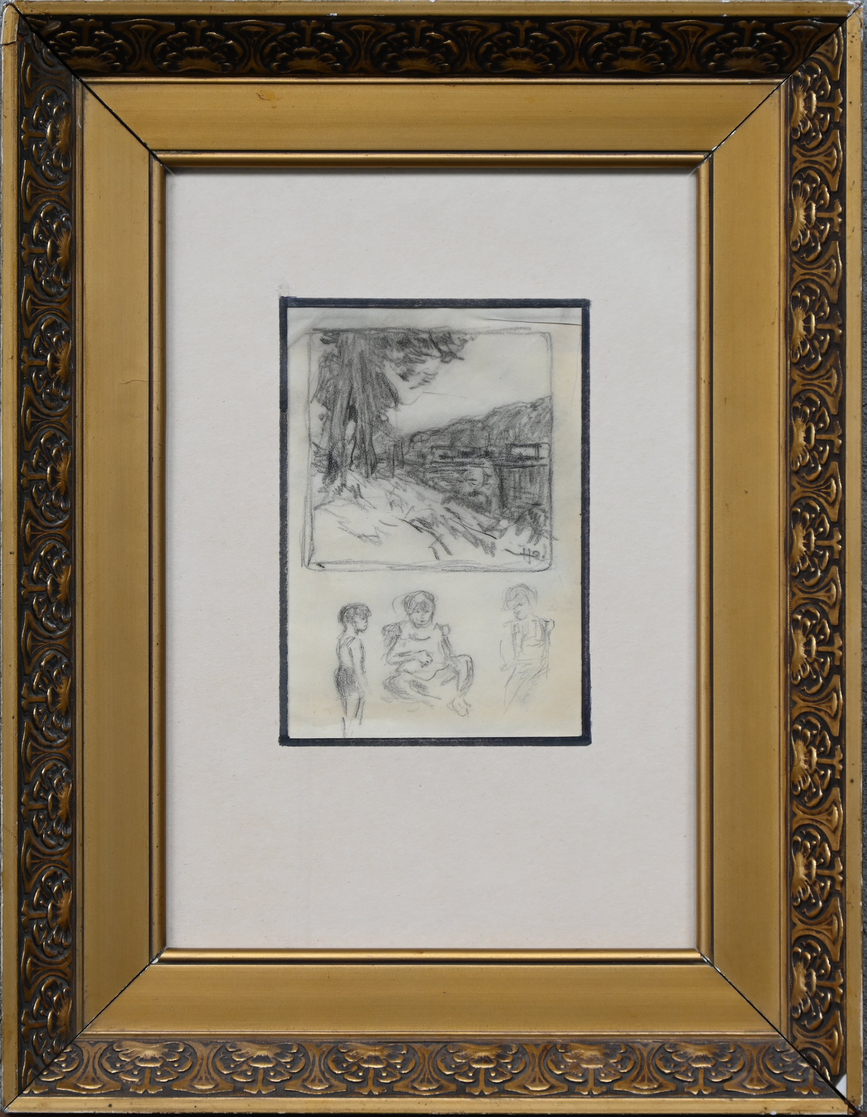 #544Een paar tekeningen in gemengde techniek, vermoedelijk 19e eeuw. Gemonogrameerd HB.