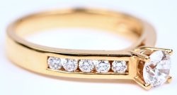 #160Een 18 kt geelgouden ring bezet met centrale briljant van 0,51 ct. en briljanten met een gezamenlijk gewicht van 0,32 ct.