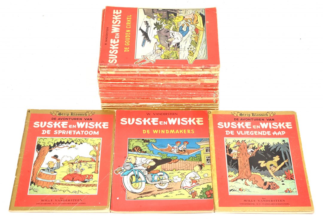 Suske and Wiske. Red series, uncolored. Numbers 4 (ed. 1960), 6 & 8 (ed. 1958), 11 (ed. 1961), 12 (1st edition), 16 (ed. 1954), 18 (ed. 1962), 20 (ed. 1959), 21 (ed. 1962), 22 (ed. 1960), 23 (ed. 1962), 24 (ed. 1960), 25 (ed. 1962), 27 (ed. 1960), 28 (ed. 1959), 29 (ed. 1960), 30 (ed. 1961), 31 (ed. 1962), 32 (ed. 1959), 34 (ed. 1958). 20 pieces, very well-read to reasonable condition.No longer availableEstimate: € 50 / 100 -