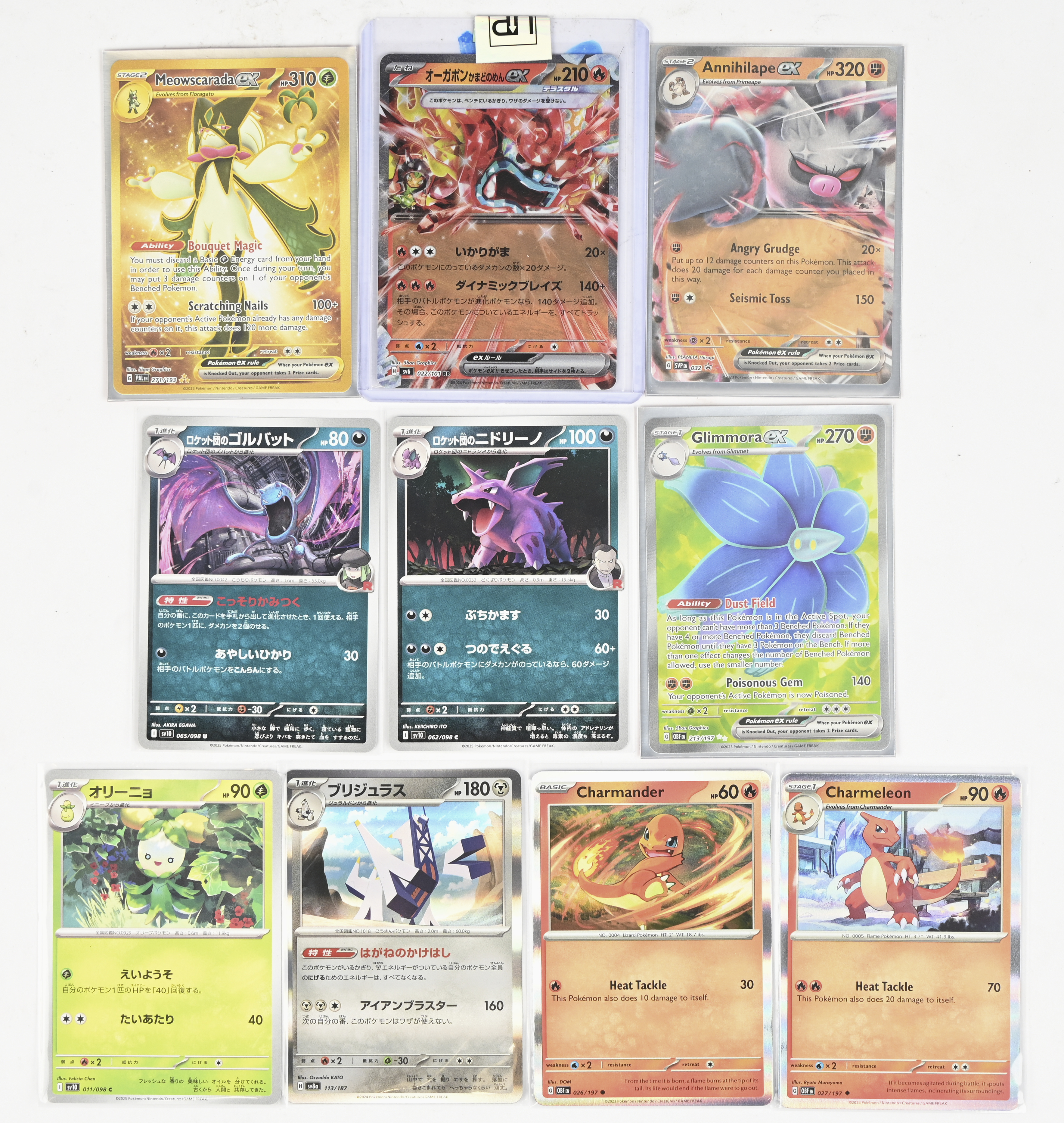 Team Rocket's Zubat [Common; Normal] — Glory of Team Rocket — €0.88Team Rocket's Nidorino [Normal] — Glory of Team Rocket — €0.75Dolliv [Normal] —  Glory of Team Rocket  — €1.29Archaludon (JP)  [Normal; Normal] — Terastal Festival ex — €1.20Hearthflame Mask Ogerpon ex [Double rare, Holofoil] — Mask of Change — €1.15Glimmora ex [Ultra Rare; Holofoil] — Obsidian Flames — €0.94Charmander [Common; Normal] — Obsidian Flames — €0.16Charmeleon [Uncommon; Normal] — Obsidian Flames — €0.10Annihilape ex [Promo; Holofoil] — Scarlet & Violet Promo — €0.57Meowscarada ex [Ultra Rare; Holofoil] — Paldea Evolved — €4.49