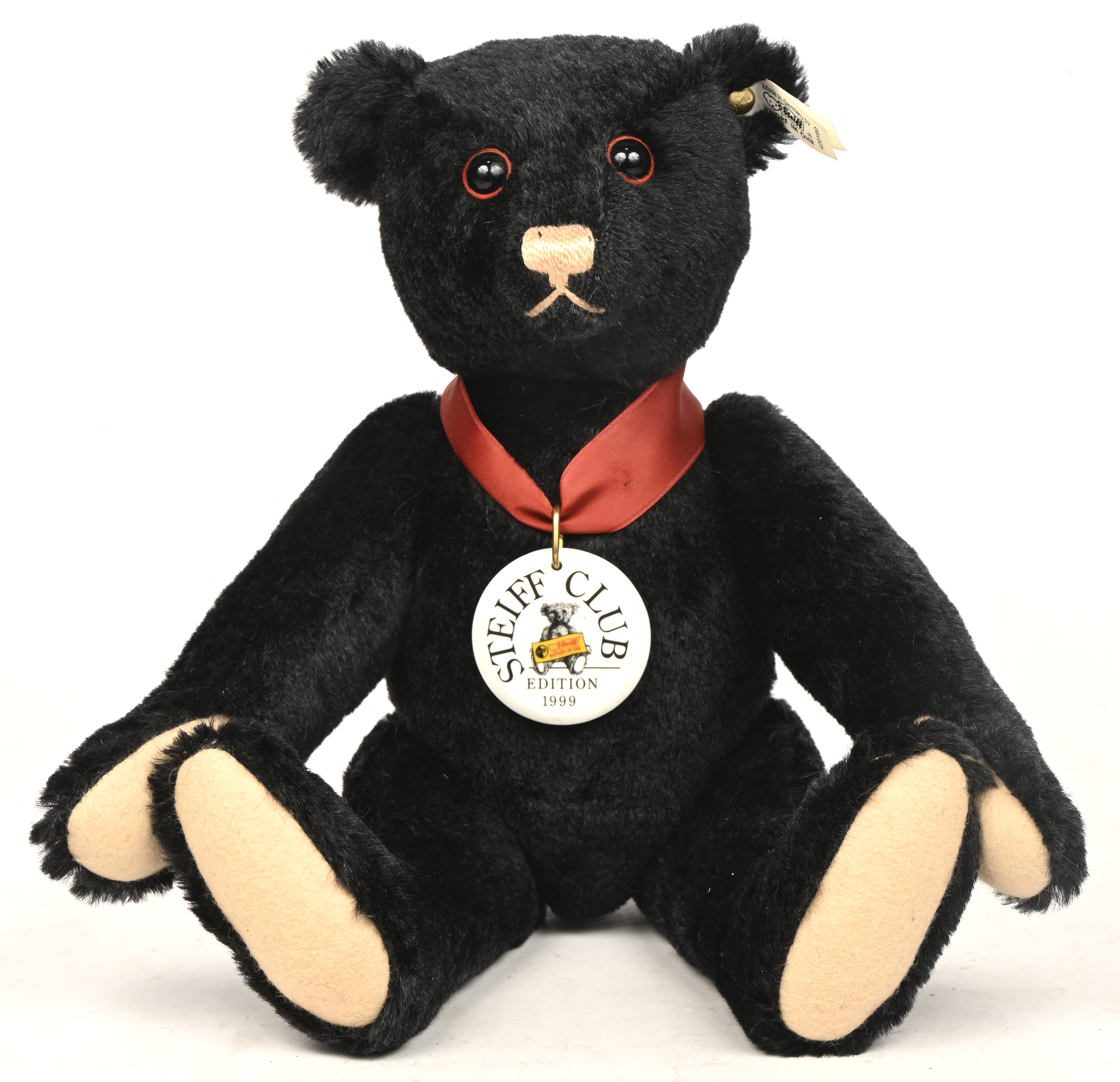 'Toots', a Steiff bear, dedicated to Toots Thielemans. Made of mohair, 33 cm tall. Embroidered snout and claws. The paws are made of felt with the embroidered signature of Toots Thielemans. No. 00135 of an edition of 1500 copies. -