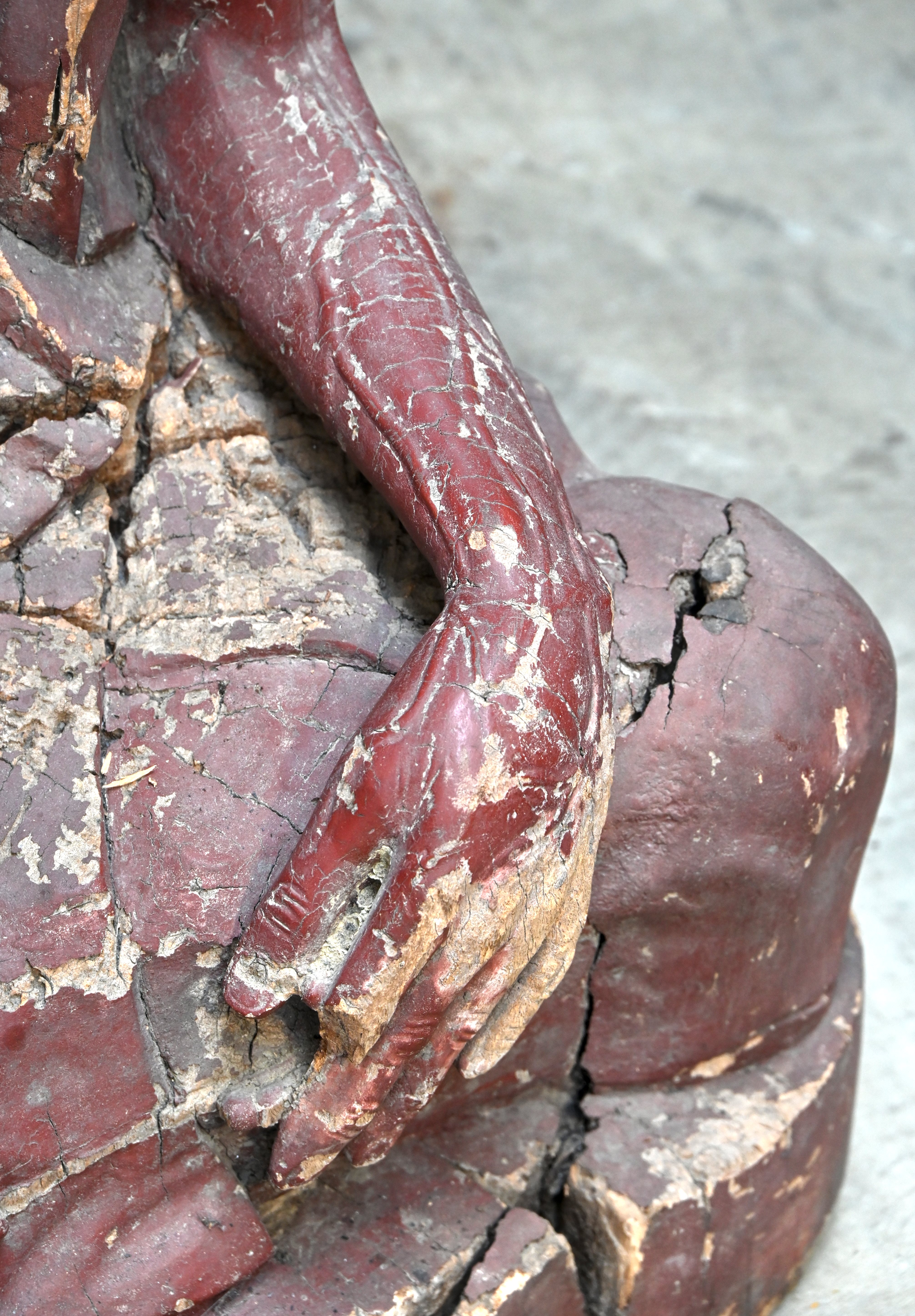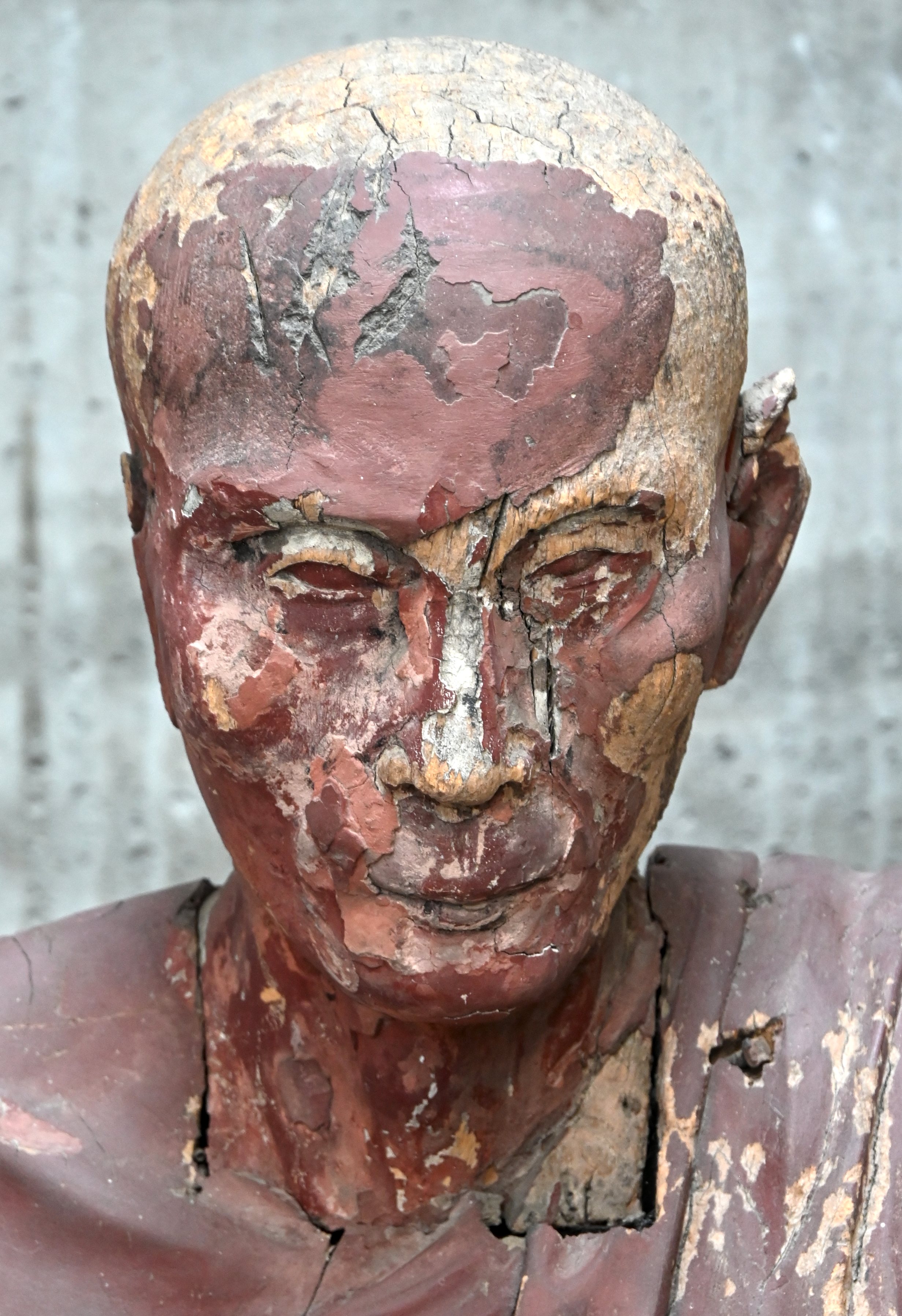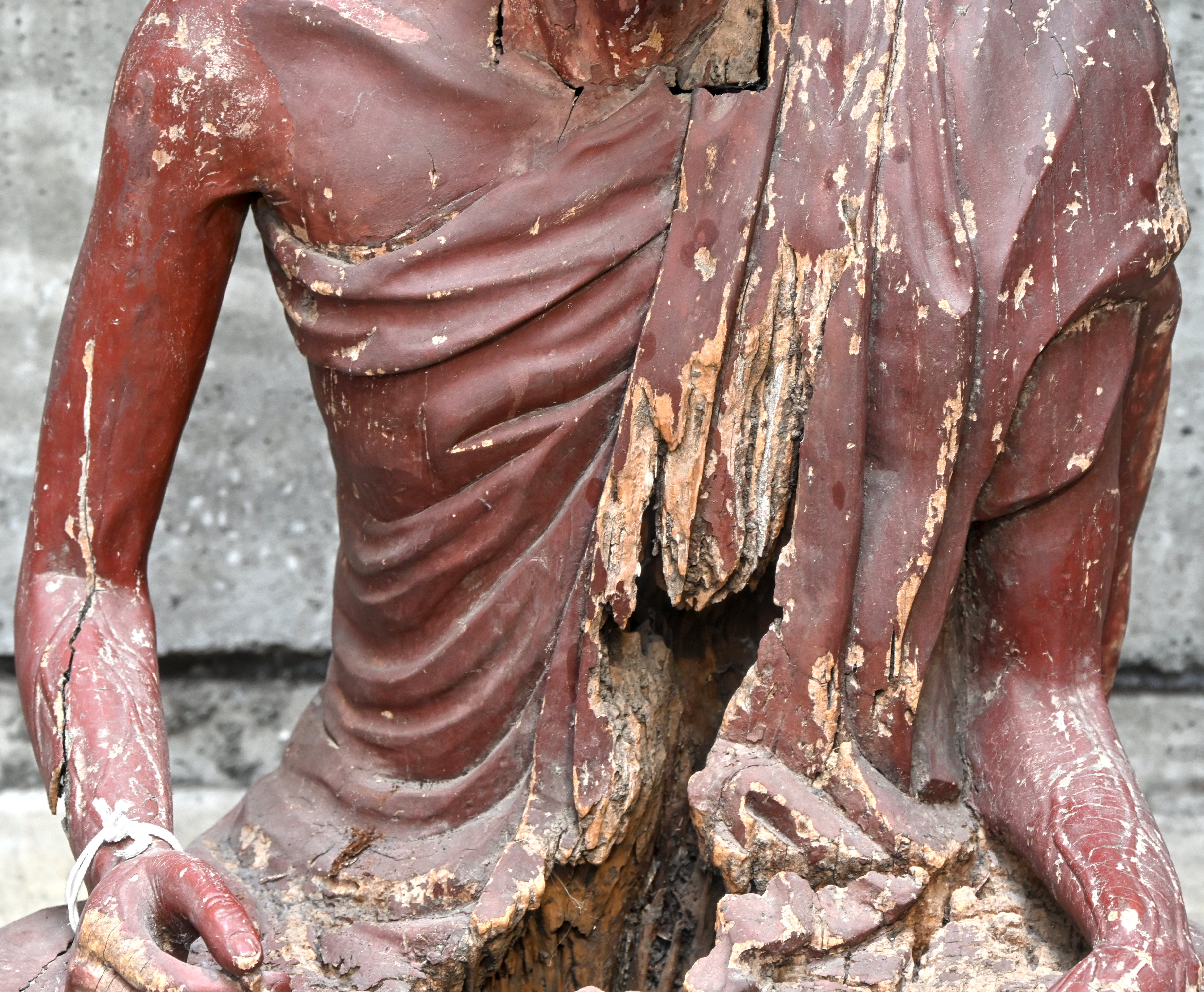 A wooden carved putto. Late 19th century.No longer availableDim. h 65 cmEstimate: € 60 / 80 -