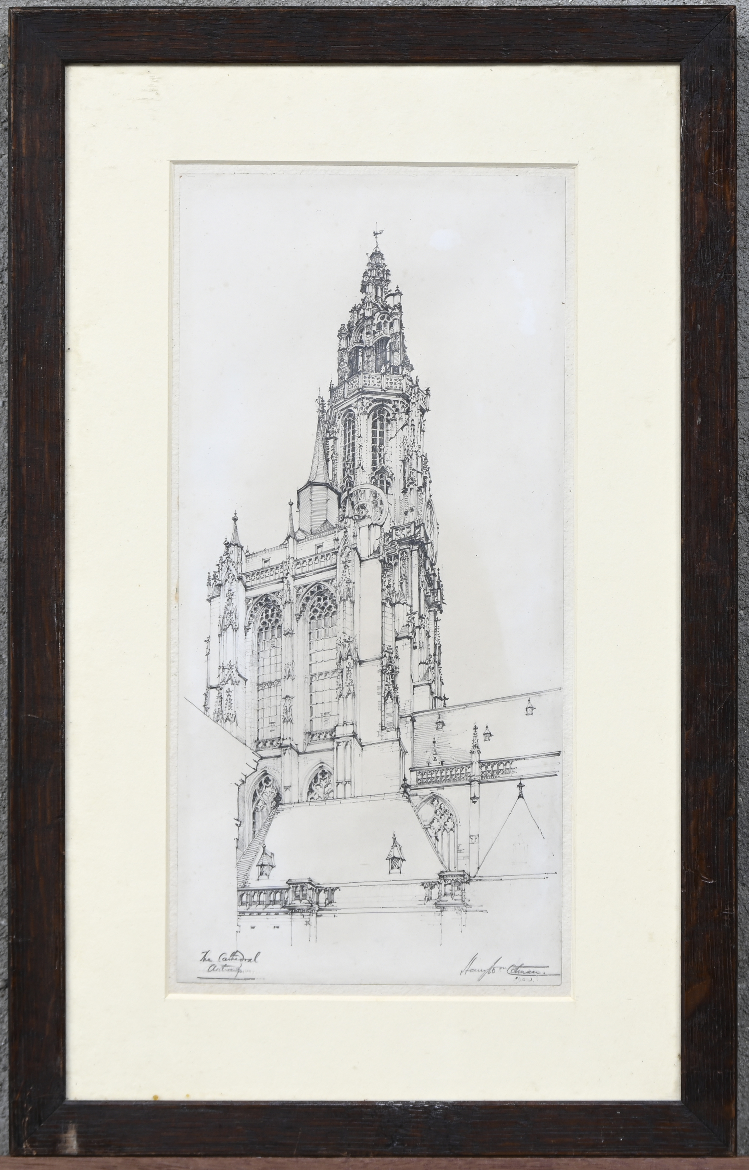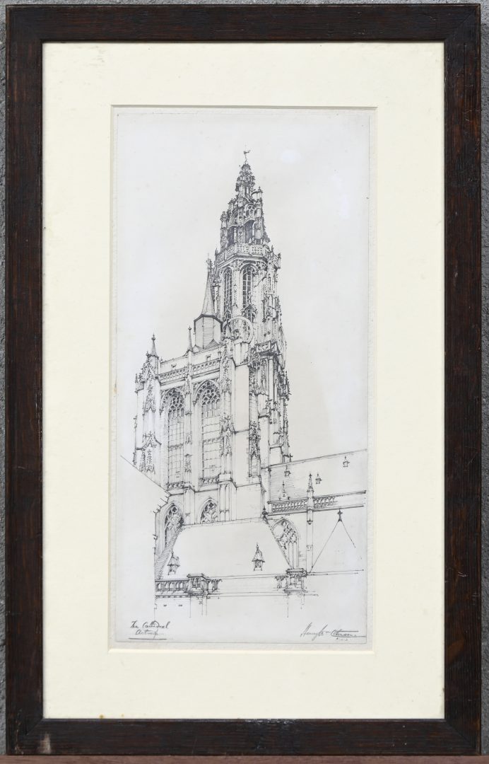#172Franz Courtens“Winters dorpzicht”. Een tekening op papier. Onderaan gesigneerd.