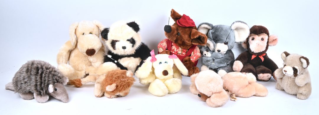 #70Negen kleine knuffelberen, verschillende merken en afmetingen. ‘Bearly There Company’, ‘Happy Horse’, ‘Kurt S. Adler’, ‘Russ Berrie & Co.’, 2 X ‘Dakin’, ‘Kellie Bear for Kel-Toy’ en twee merkloos.