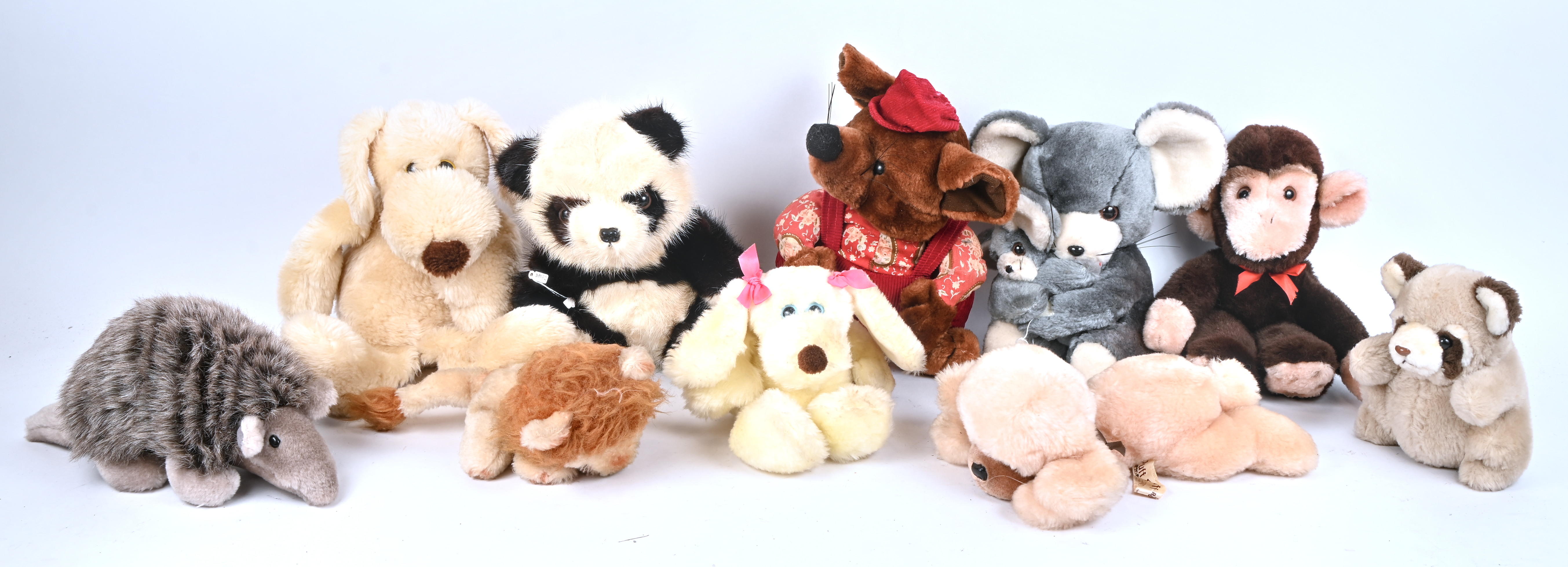 Nine small cuddly bears, various brands and sizes. 'Bearly There Company', 'Happy Horse', 'Kurt S. Adler', 'Russ Berrie & Co.', 2 X 'Dakin', 'Kellie Bear for Kel-Toy', and two unbranded. -