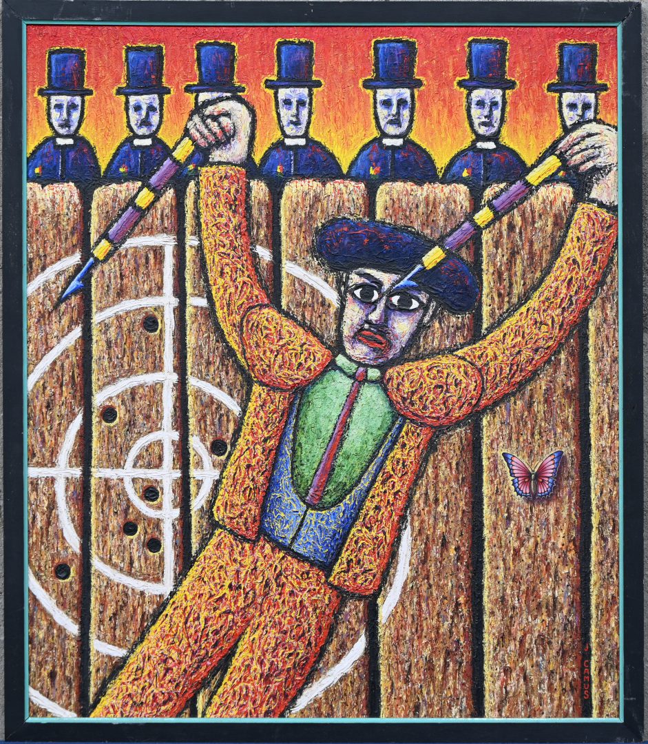 ‘A couple of chickens’, acrylic on canvas. An art brut painting, not signed.No longer availableOnline onlyDim. 81/41 cmEstimate: € 30 / 50 -