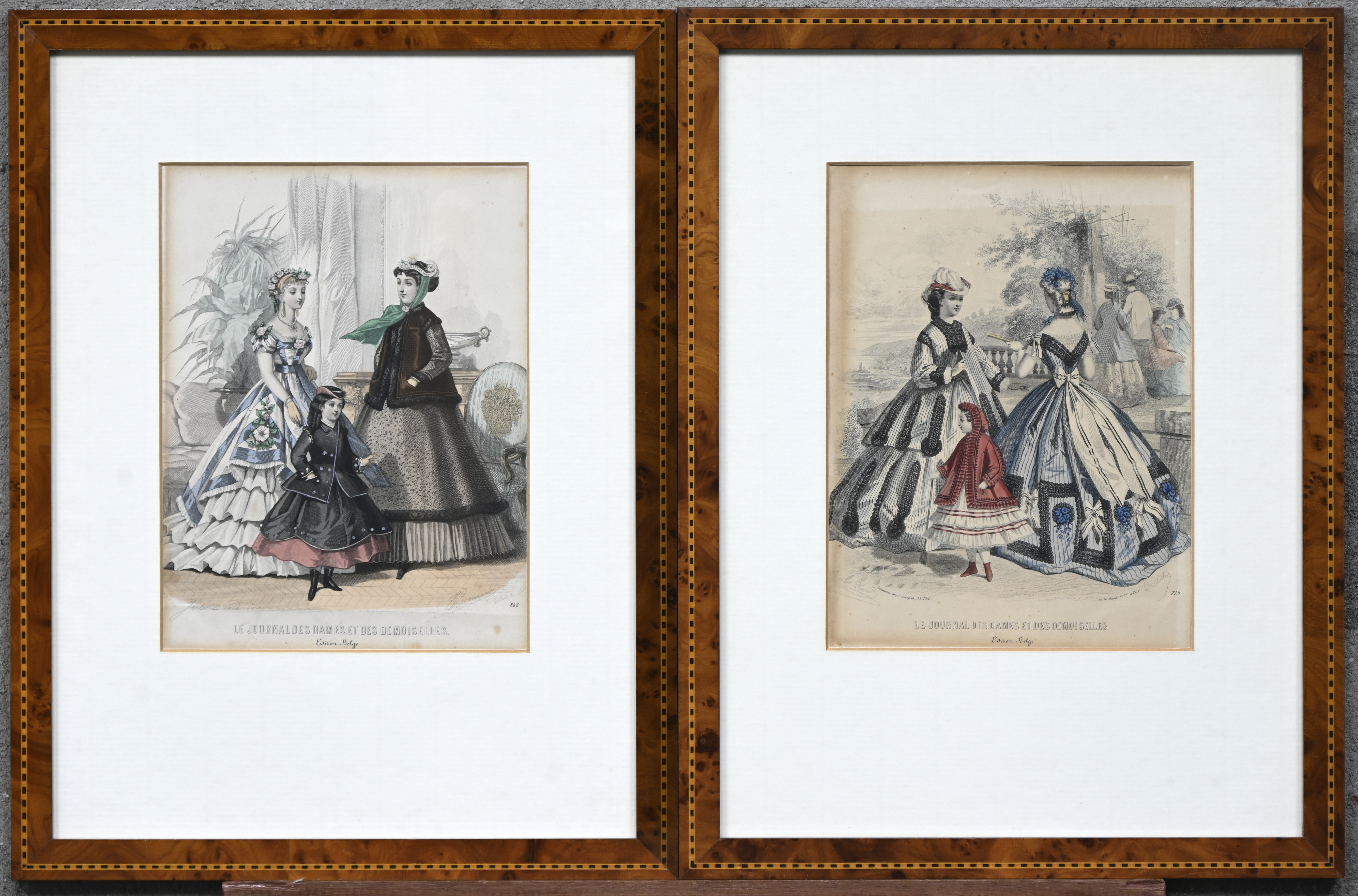 #34‘De luit en vioolmaker’, ‘De admiraal’, ‘De postillon en boode’ en ‘De konstverkooper’. Vier ingekleurde antieke gravures met passe partout.