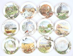 A set of 12 porcelain decorative plates, adorned with seasonal scenes. Marked Peter Banett, limited edition Royal Worcester Porcelain. -