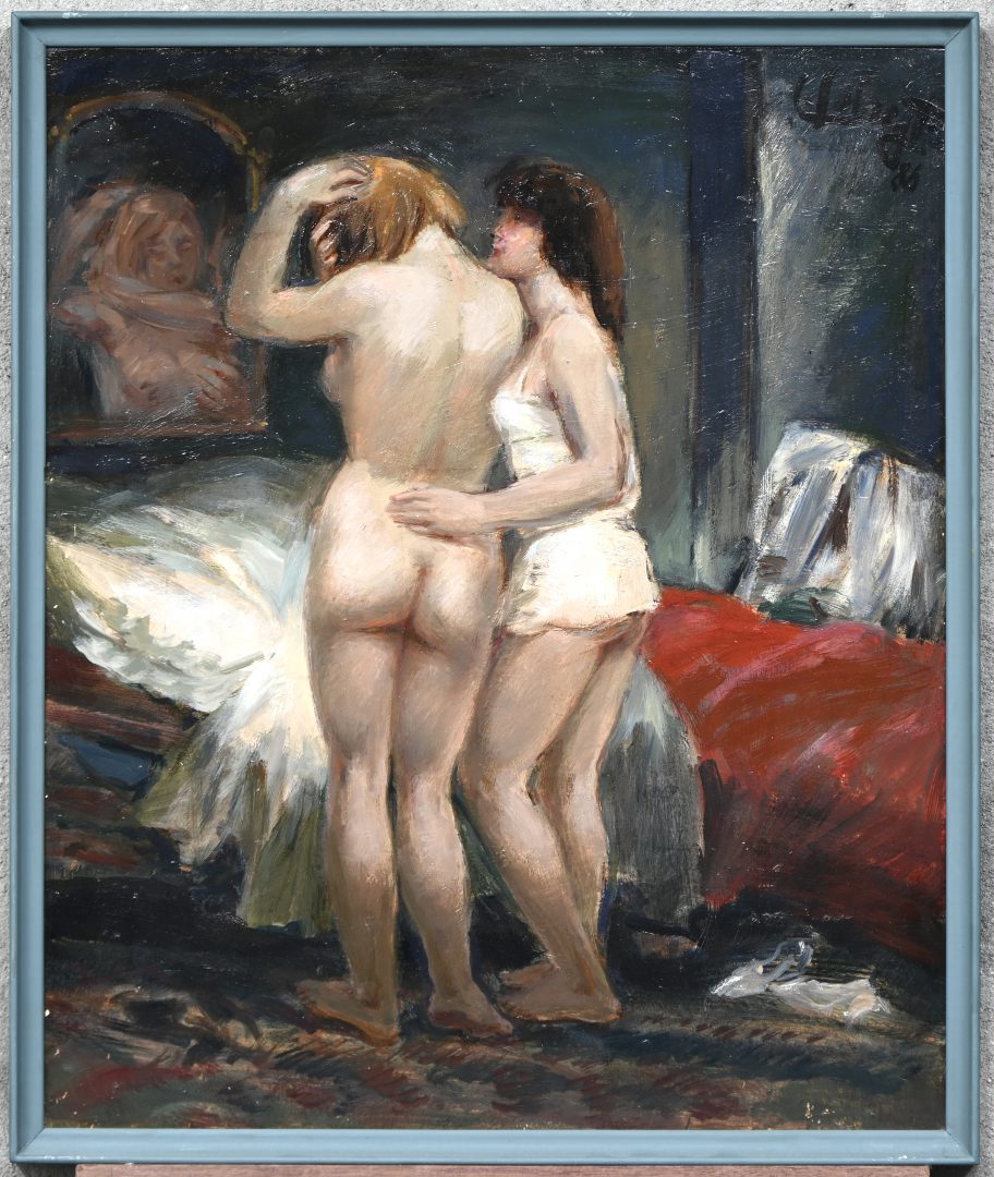 #202Lode sebregtsPeriod: 1906 - 2002‘Sapho & Phaon’, olieverf op doek. Getekend L. Sebregts. Sebregts genoot zijn opleiding aan de Academie van Antwerpen en het NHISKA, bij Isidoor Opsomer en Albert Saverys.