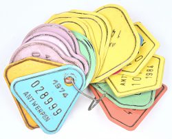 A lot of vintage bicycle license plates. Antwerp, 1970s and 1980s. -