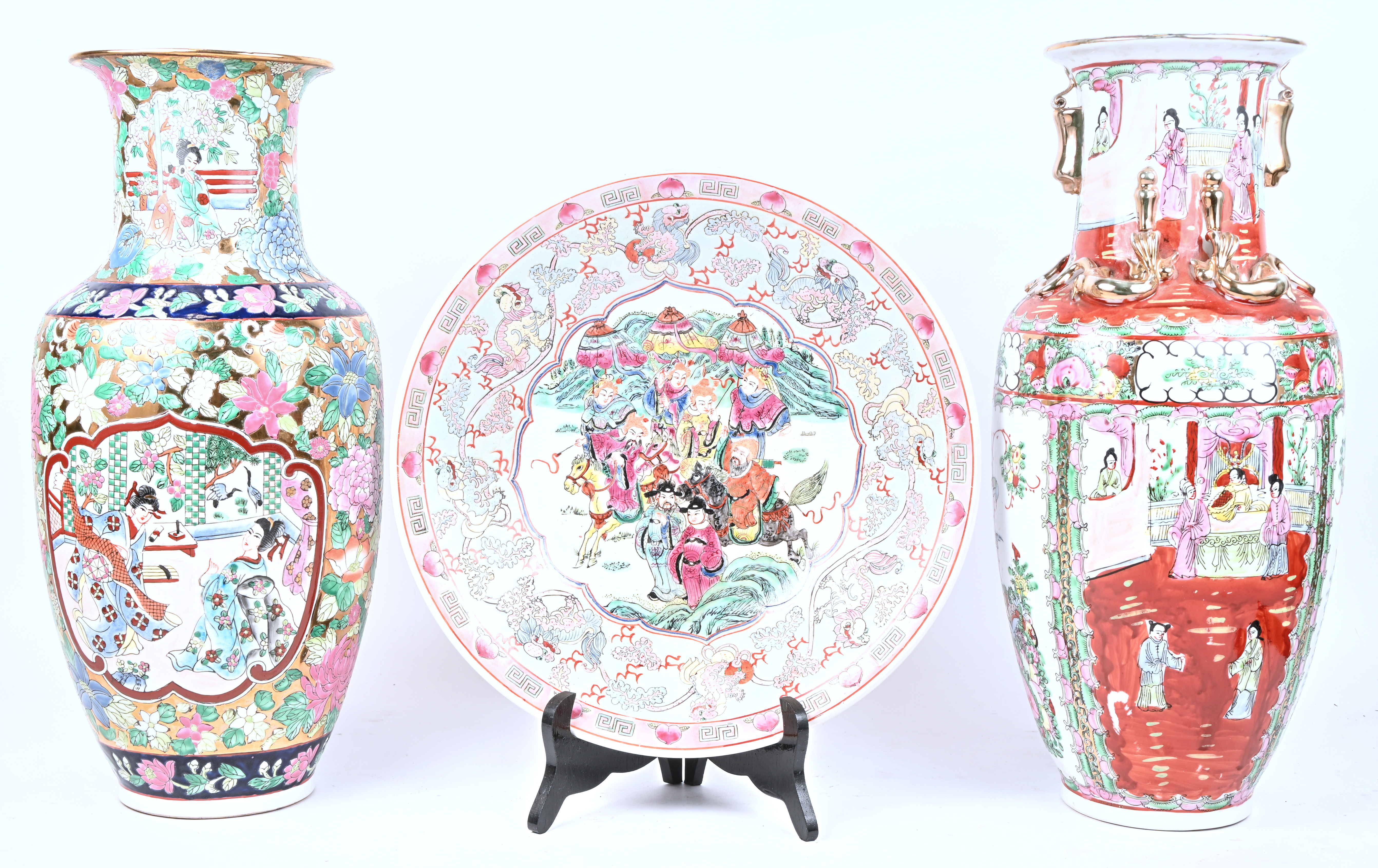 group of 7 recent Cantonese decor bowls, bowls and vases with lids. Marked at the bottom. -