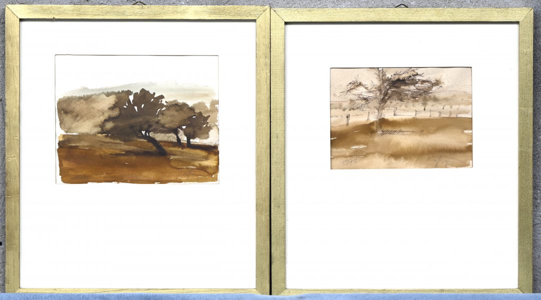 #544Een paar tekeningen in gemengde techniek, vermoedelijk 19e eeuw. Gemonogrameerd HB.