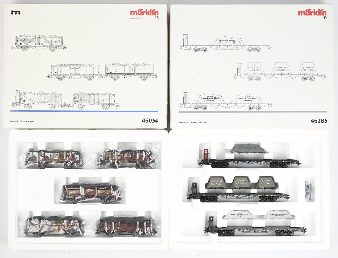 Twee Märklin sets. Set wagens “Kolentransport” 46034 & Set wagens “Locomotieffabriek” 46283. In OVP.