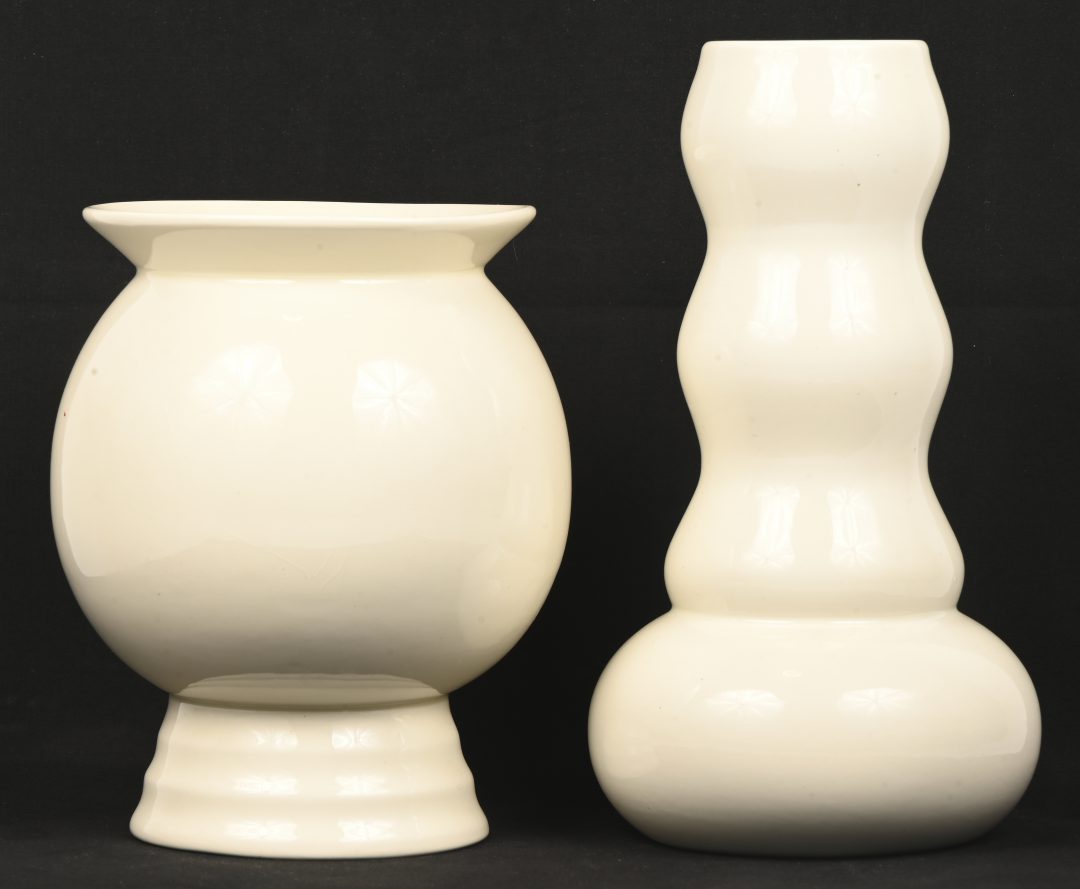 #151Charles CatteauEen set monochrome art-deco vazen, Charles Catteau, 1927, model F1079, gemerkt ‘made in Belgium’, en genummerd. Eén vaas is gerestaureerd aan de hals.