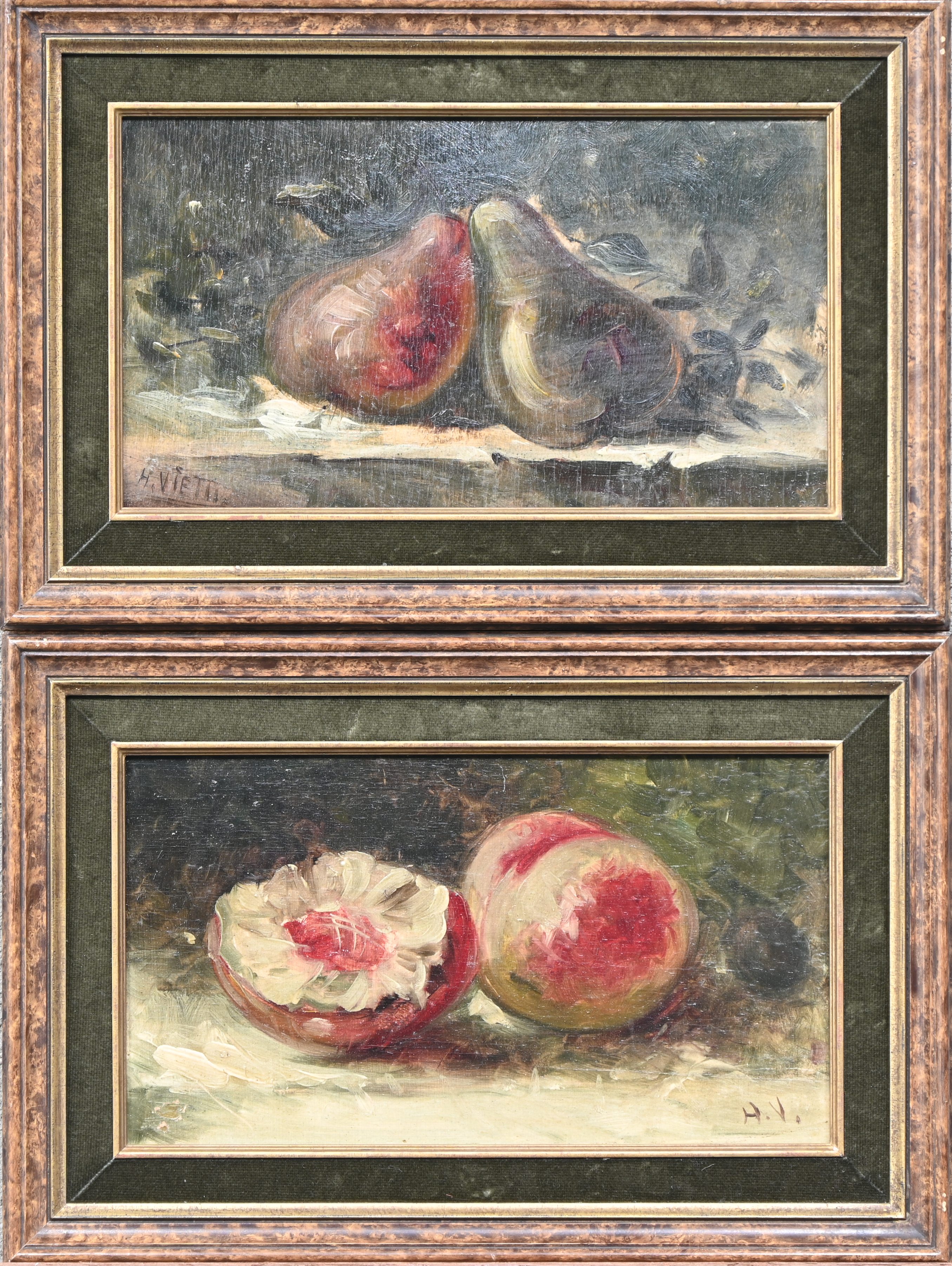 Two still lifes with fruit, oil on panel. Signed H. Vietti.