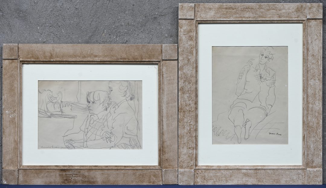 Twee studies in potlood naar levend model, één met monogram ‘YP’ en één getekend ‘Yvonne Perin’.