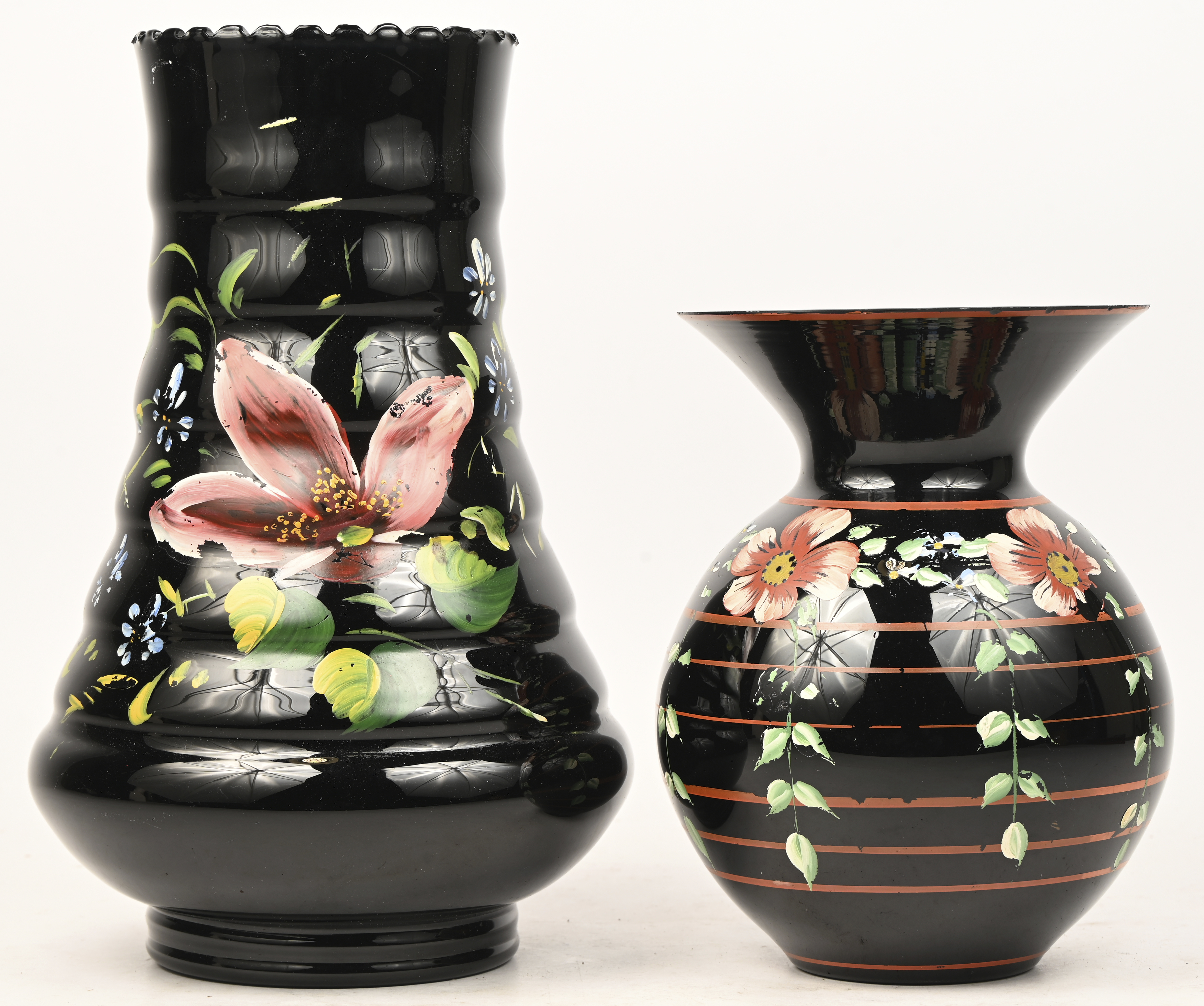 A pair of large horn vases made of Brussels porcelain with a floral decoration. Circa 1900.No longer availableDim. h 32 cmEstimate: € 40 / 60 -