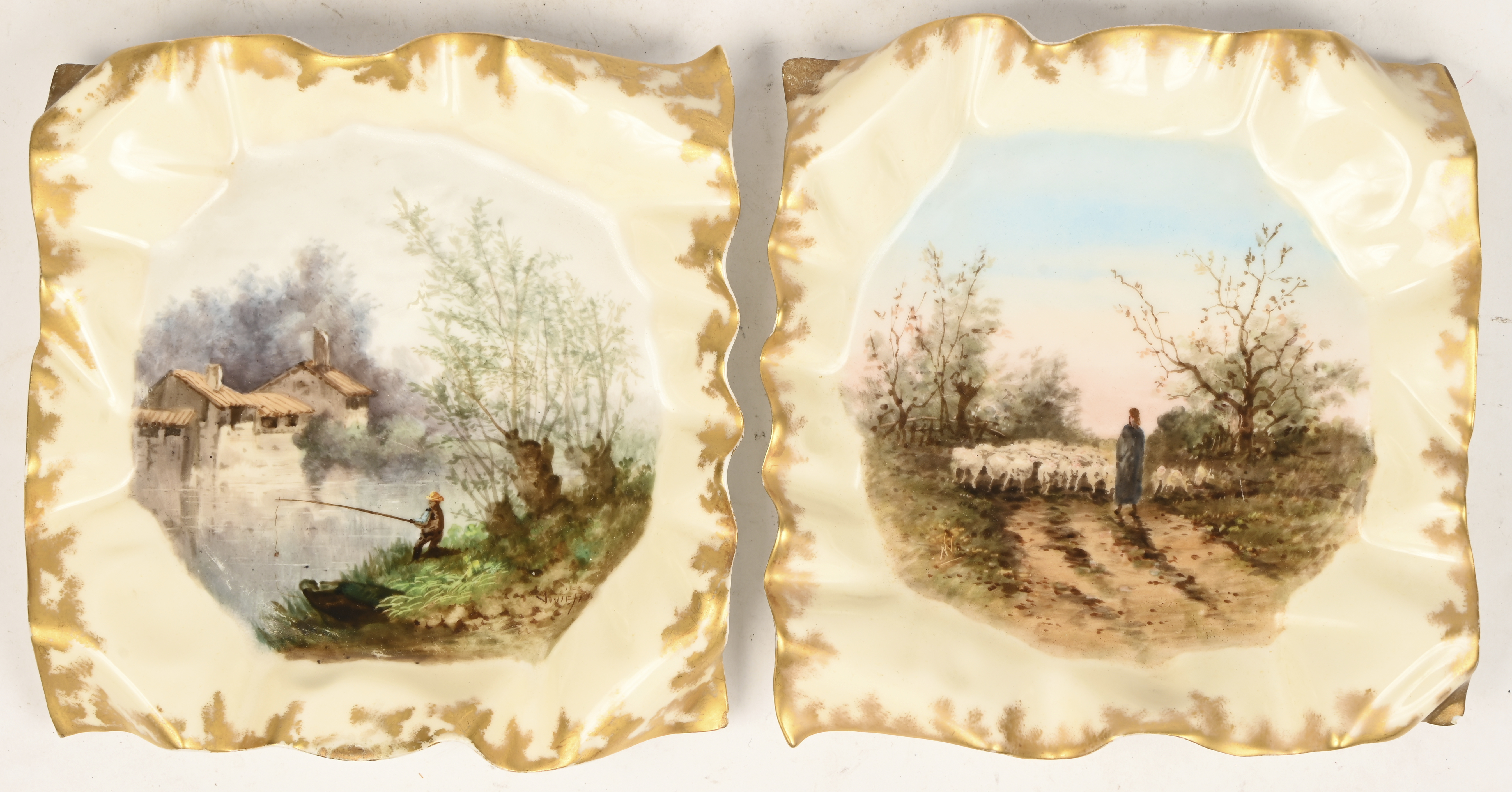 #187Een rokerssetje van meerkleurig porselein, met een decor van bloemen. Gemerkt Limoges.