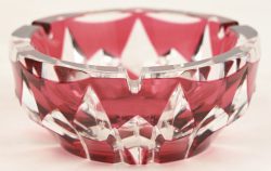 A crystal ashtray, pink colored in the mass, marked at the bottom. -