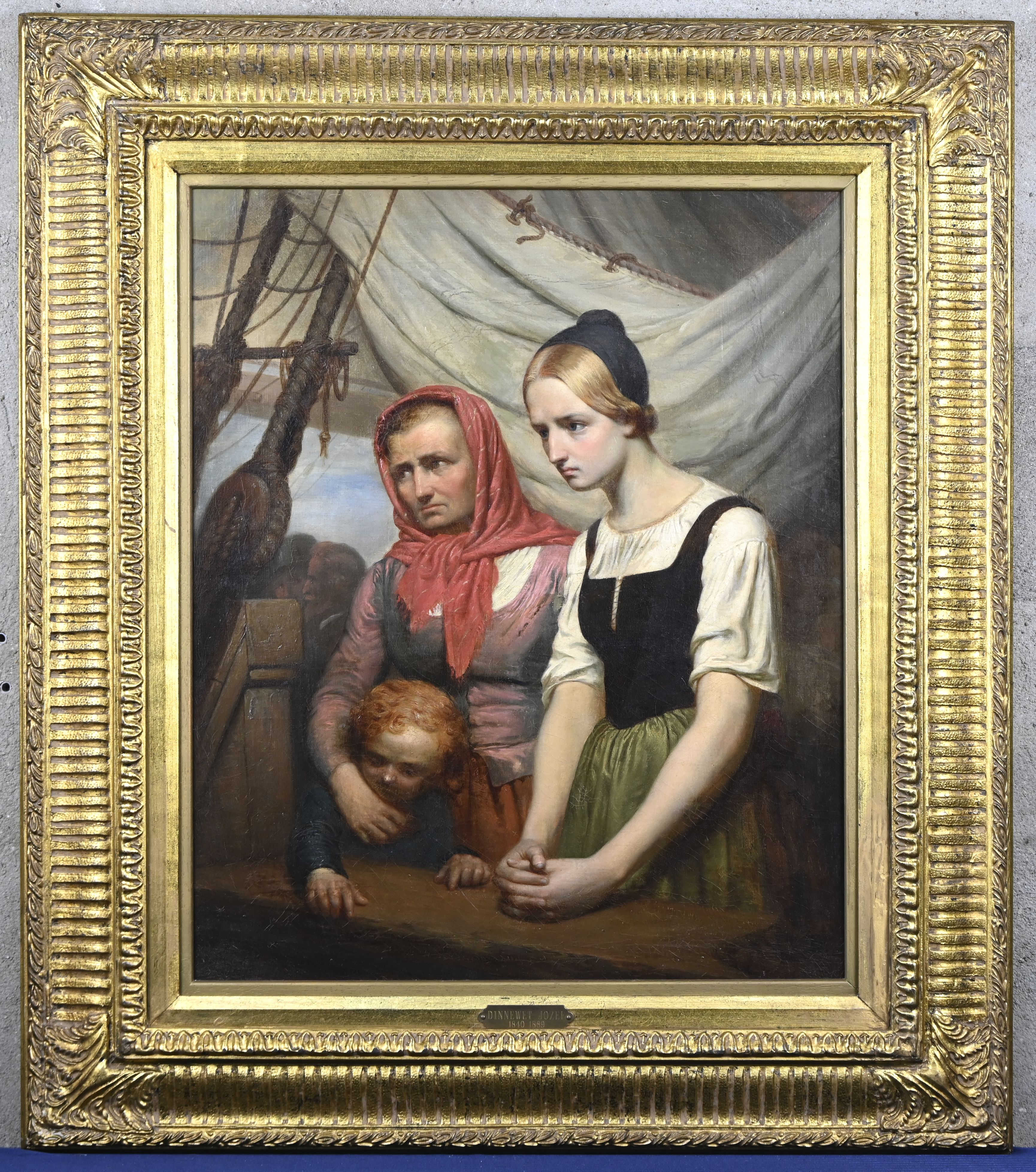 “Vissers en vissersboten op het strand”. Olieverf op paneel.