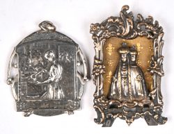 #44Een penning (S.M. Antwerps noenmaal 1916) en een klein verzilverd religieus object.
