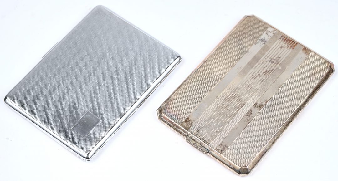 #36Een lot van twee houten kistjes. Zwart met koperen inlegwerk en een gemarqueteerd.