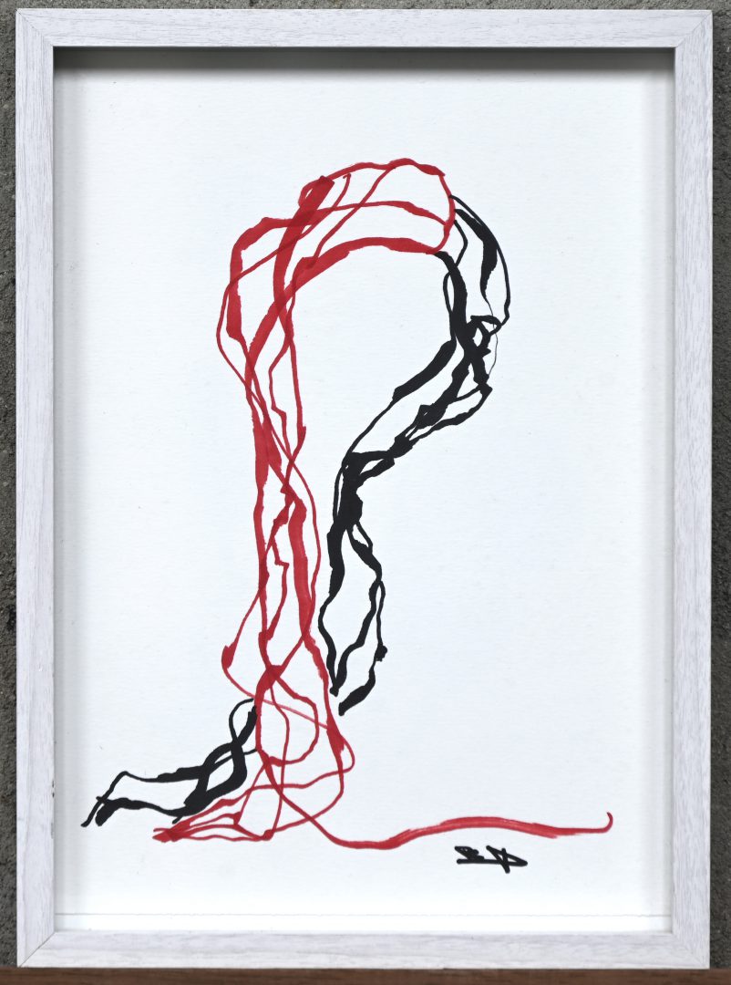 ‘Staand naakt’, studie in rood en zwart krijt. Onleesbaar getekend.